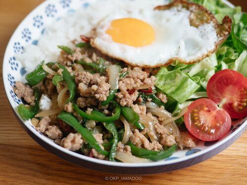 ガパオライス(タイ料理のパットガパオ)が好きで相変わらずよく作ってます。料理としてはとてもシンプルで、鶏や豚肉、シーフードミックス等をニンニクや鷹の爪と炒めて、好きな野菜を投入(玉ねぎ、ピーマン等)、ナンプラーとオイスターソース等で味付け…