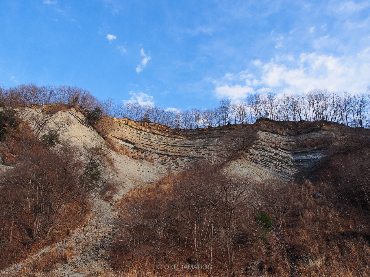 冬場は木々の葉が散っているので、地層がよく見えます。