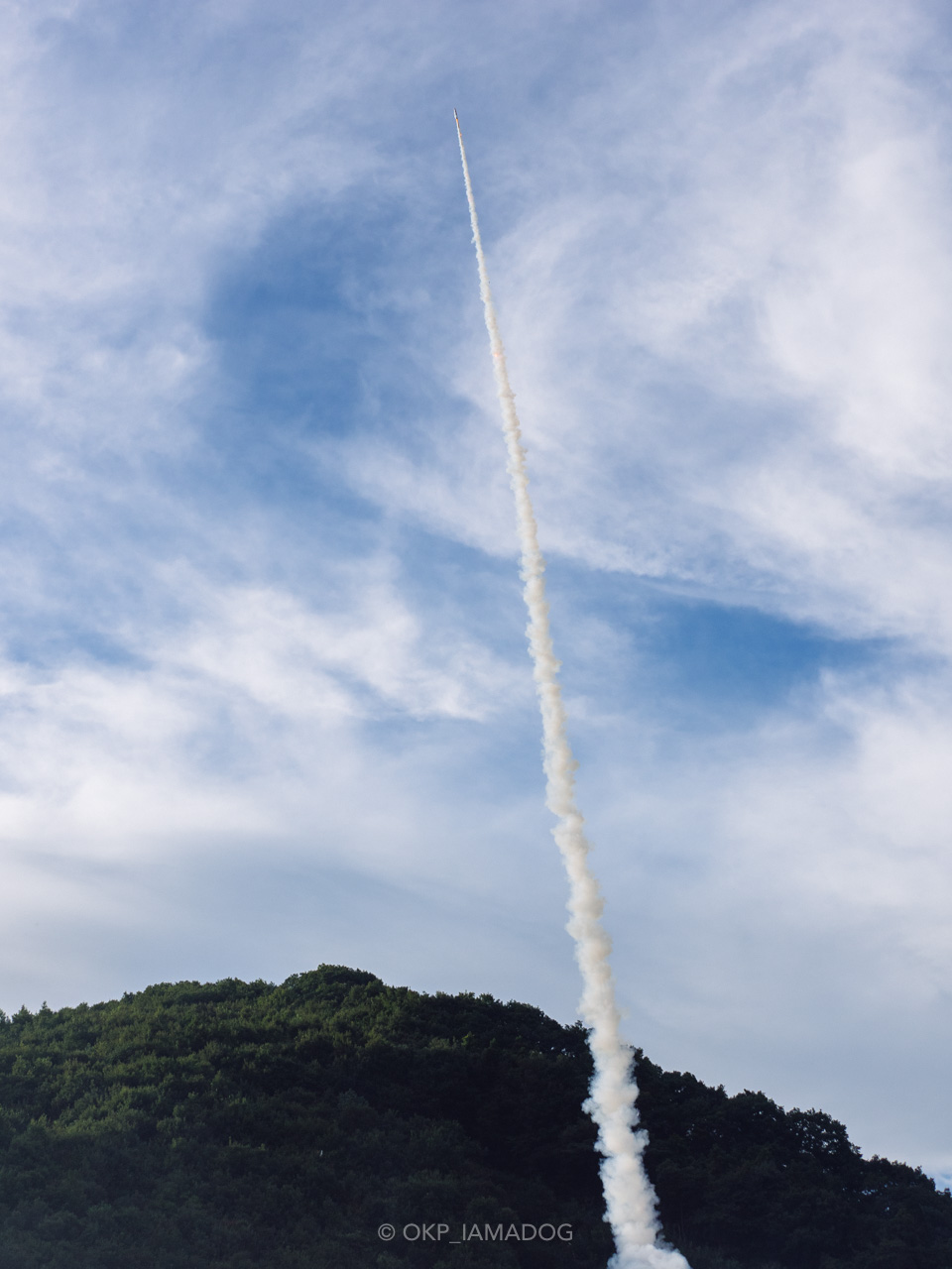 この龍勢は勢いよく発射されたものの、綺麗な放物線を描いたまま開くことなく山の向こうへ消えてしまいました…。