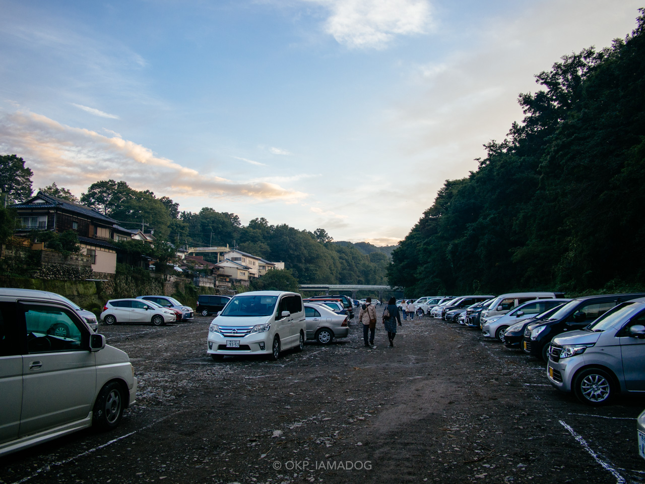 祭り当日は会場周辺が交通規制され、車で椋神社に近づくことはできませんが、周辺には数カ所の無料臨時駐車場が設けられます。この日、我々が車を駐めたのは、吉田川沿いの駐車場(第三)。会場への距離が比較的近い駐車場ですが、ちょっとした山道(という程でもない)を歩くことになるので、足腰の弱い人は避けた方が無難です。