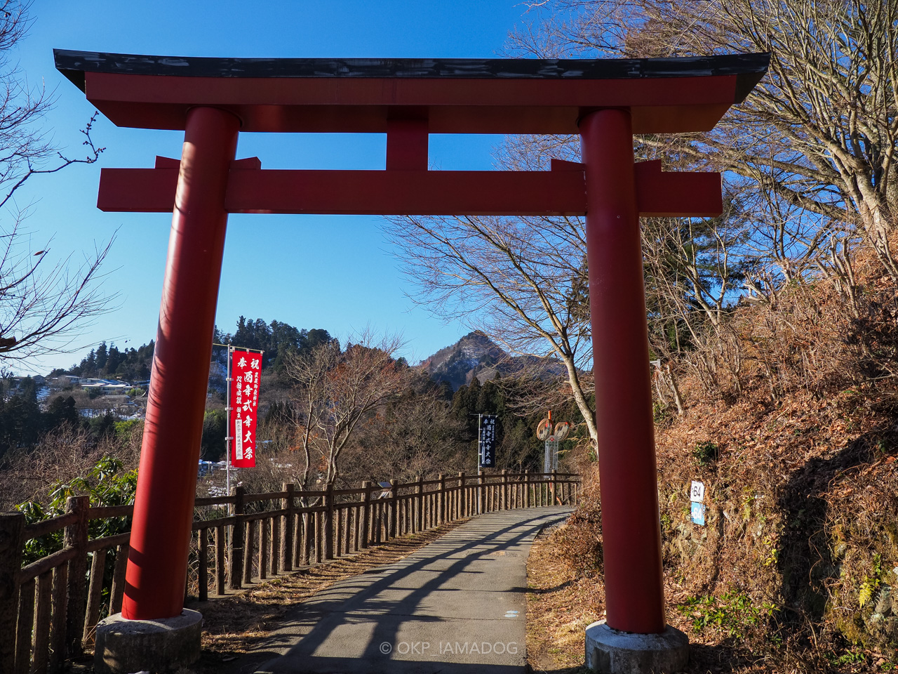 鳥居の向こうに見える尖ったピークは「奥の院」、そこから「鍋割山」「大岳山」へと抜けていくのが今回のルートです。コースタイムは大岳山までだいたい2時間半弱といったところ。その他に渓流沿いを歩くロックガーデンや、途中のピークを巻くルートもありますが、コースタイム自体は大きく変わらないようです。
