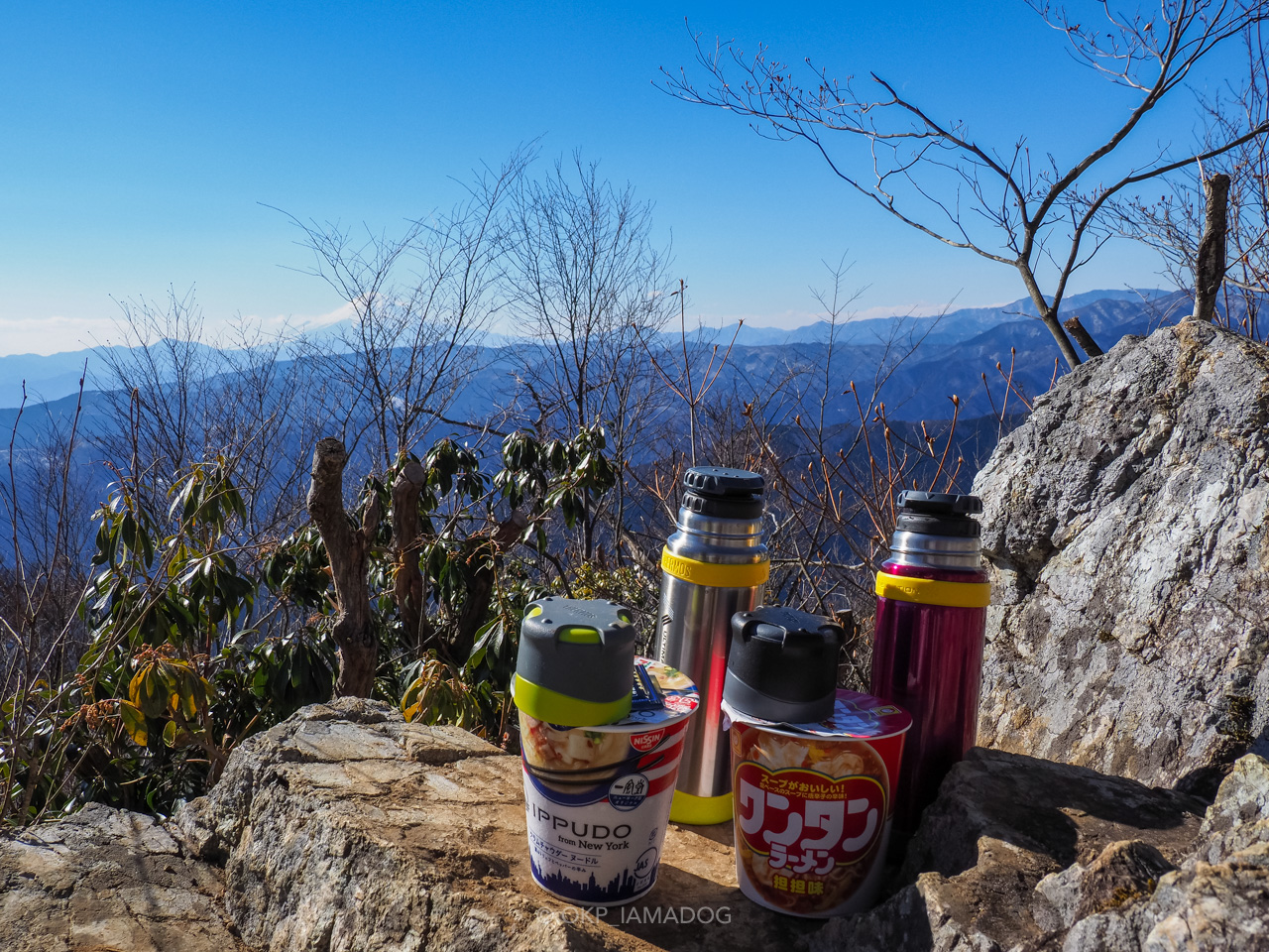 食事はカップラーメンで済ませてしまいます。コンロで沸かし直すのも面倒ですし、山専ボトルのお湯でそのまま行ってしまいましょう。80℃位はキープされているはずです。