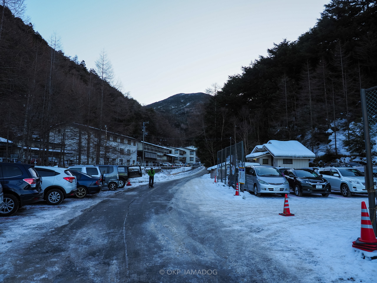 …という情報を事前に仕入れていたので、6時過ぎに受付して無事スペース確保。7時頃に目を覚ますと駐車場はほぼ埋まっていて、冬でも人気の山であることがよく分かります。
