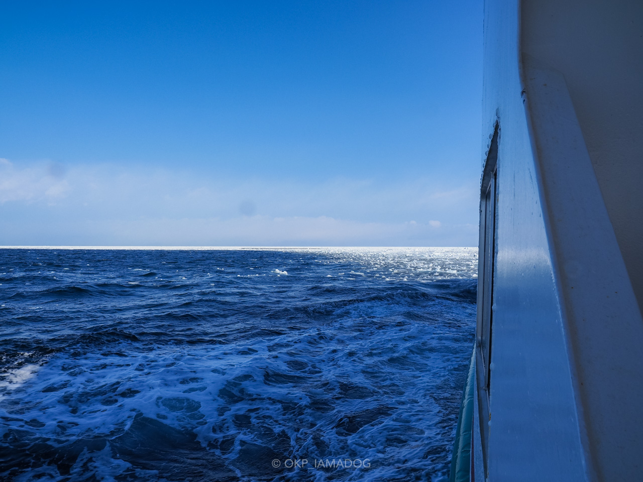 随分と網走港を離れましたが、まだまだ流氷帯には付きません。前日はすぐ目の前の海に沢山浮かんでいたのですけどね。