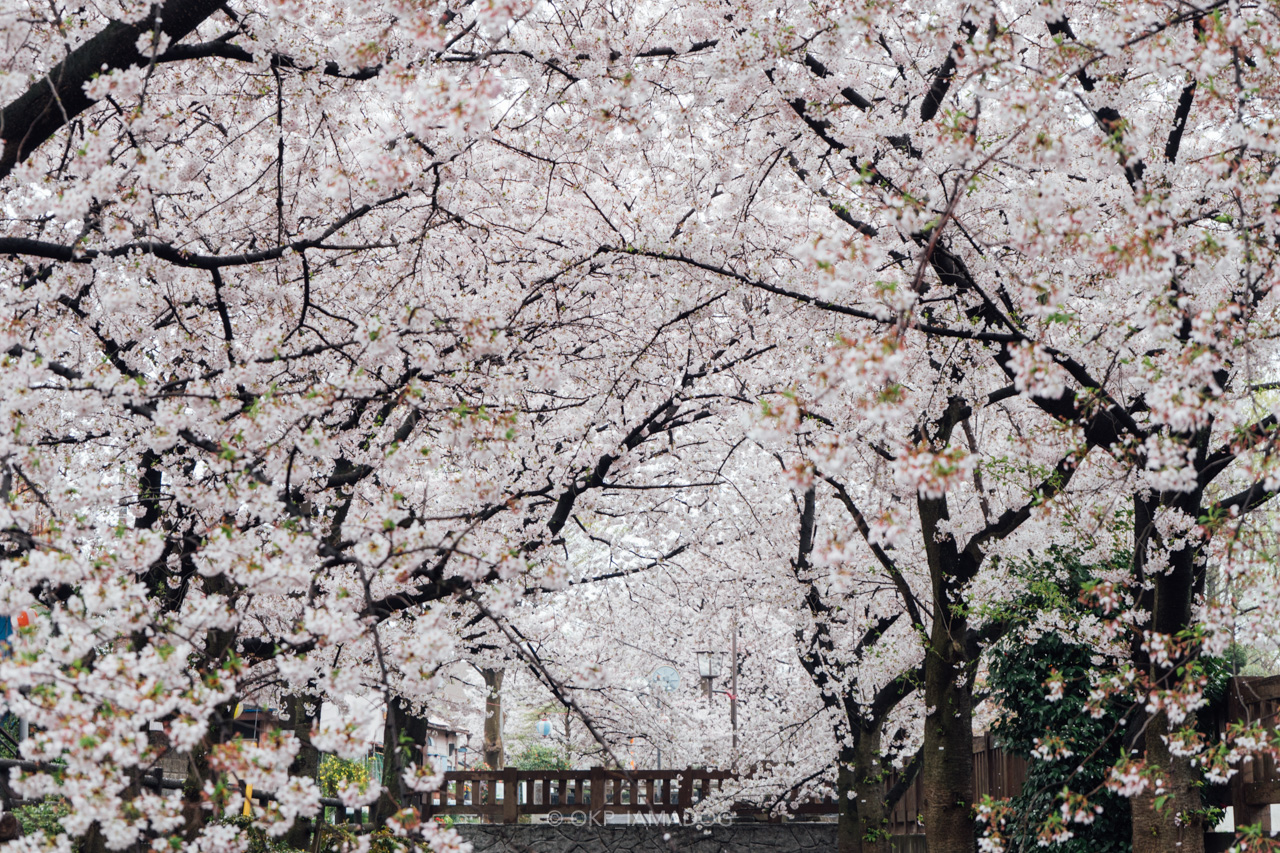 二ヶ領用水の魅力はなんといっても両岸から水路を覆い尽くすようにぎっしりと咲いた桜の密度。この見事な桜のトンネルは細い水路ならではの光景ですね。