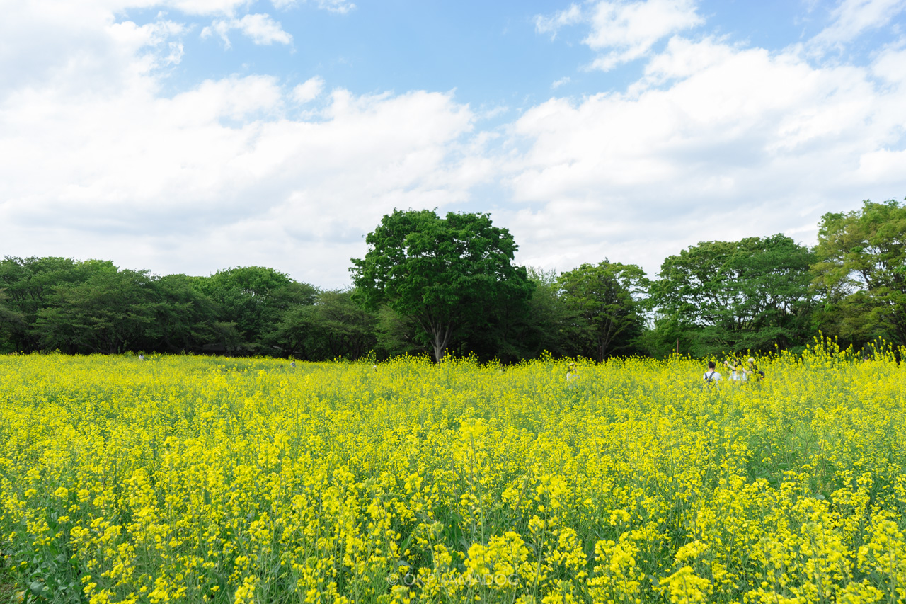 せっかくなので、みんなのみんなの原っぱの向こうに見えている菜の花も見ていきましょう。よく見るとかなり広そうですね!