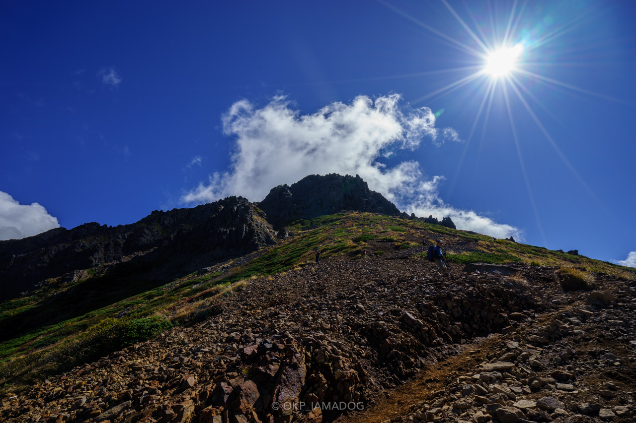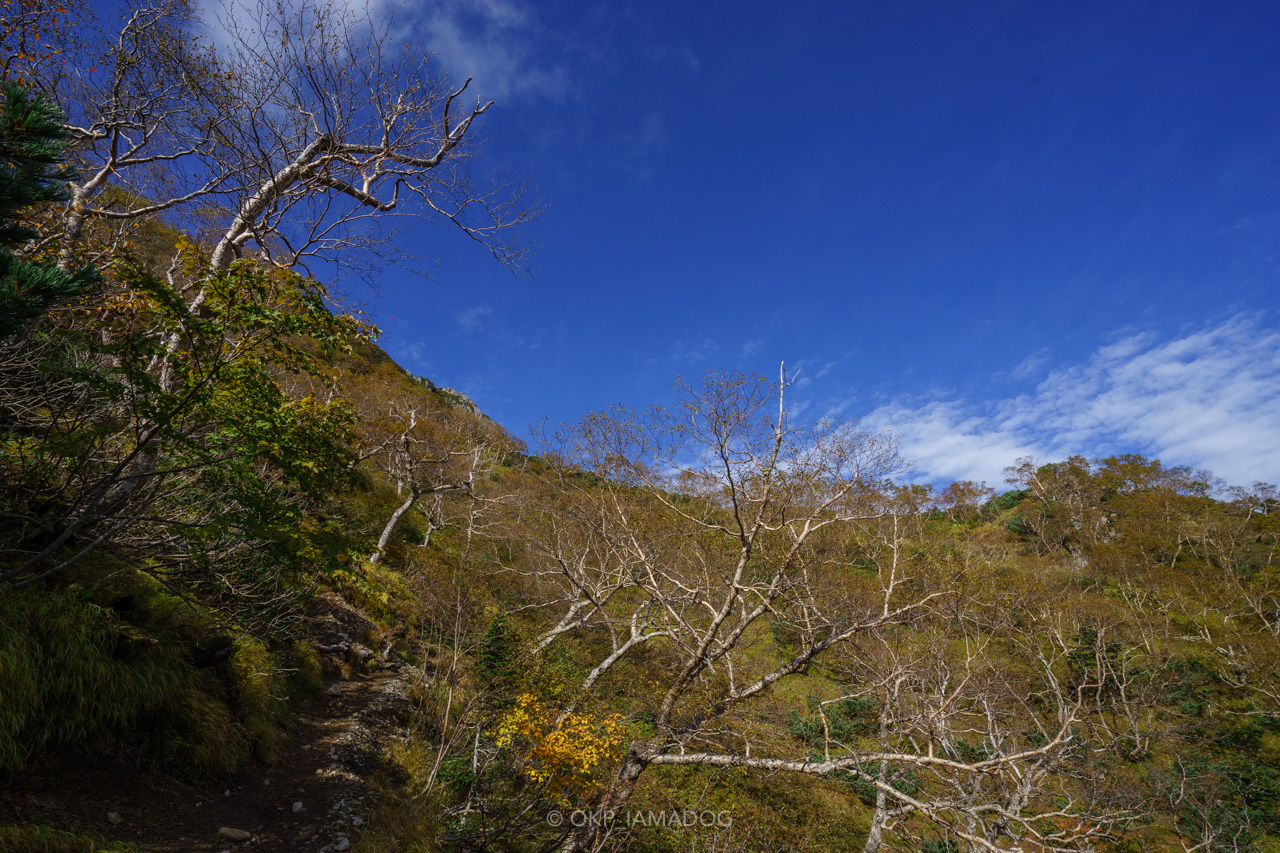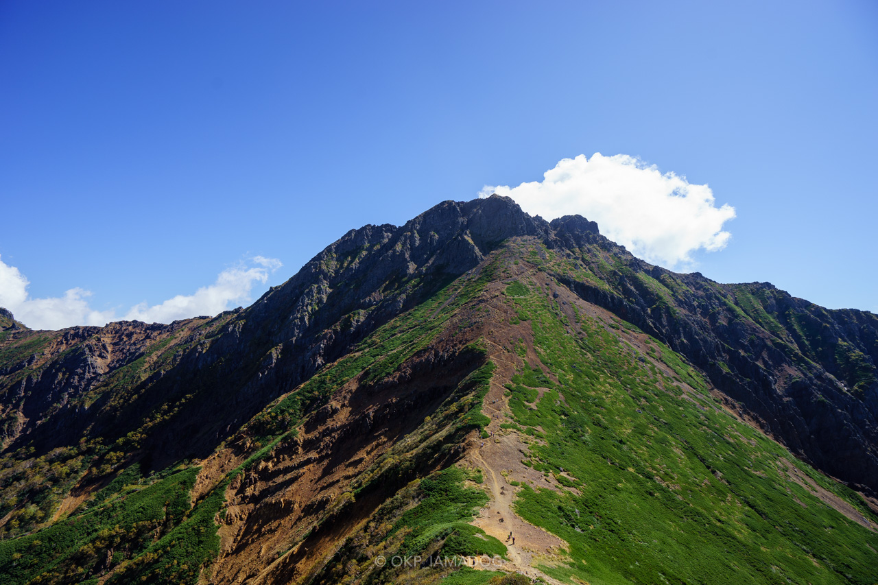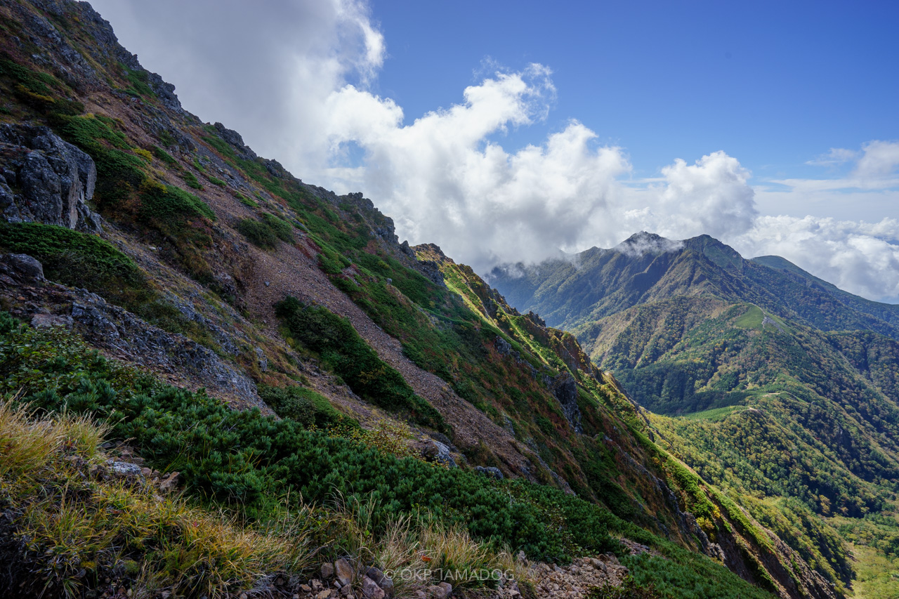 尾根の右手側、権現岳方面の山肌がなんとも美しいのですよね。これから秋が深まるとどんな色を見せてくれるのでしょう。