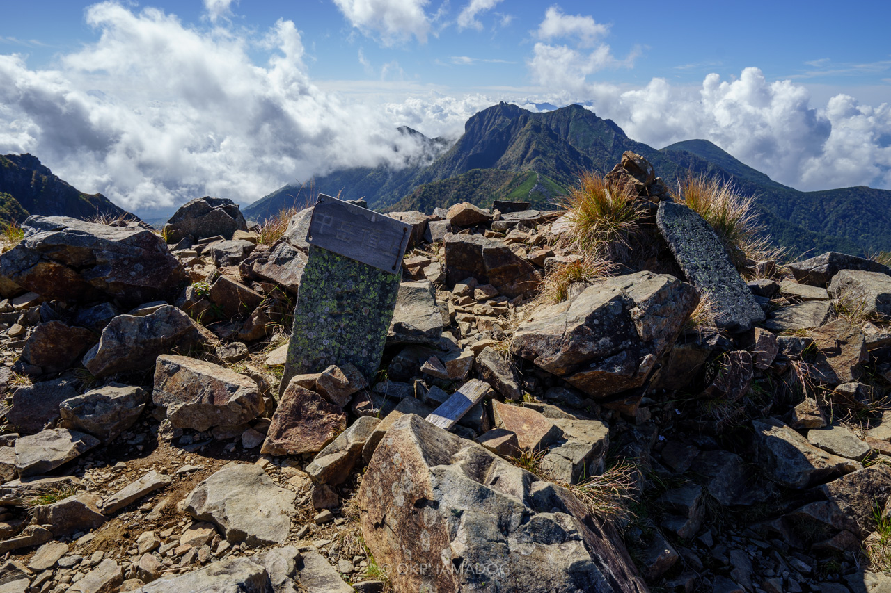 コルから少し上り返して中岳山頂(標高2,700m)。
