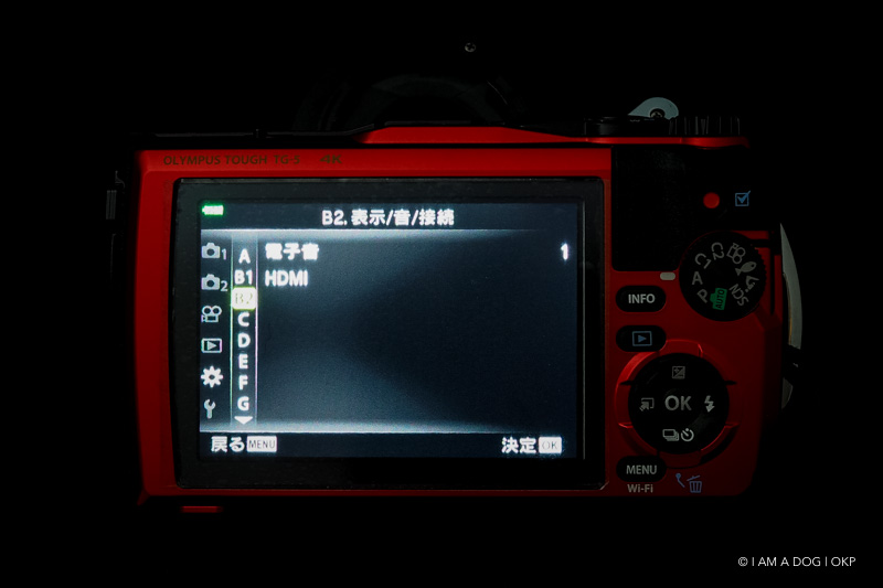 メニュー画面の構成はOM-Dなどに準拠したものになっています(TG-4のメニューを忘れてしまったのですが、ちょっと違ってたような?)。ただ、カスタムメニュー(歯車)内の項目、2段階も階層を下げさせて1〜2項目しかないというのは無駄なのでは?