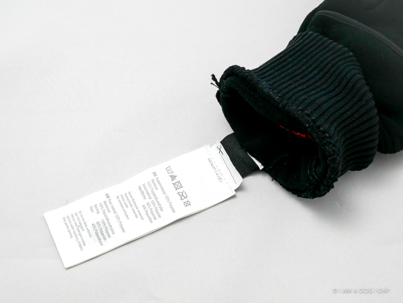 左側の手首裏についている素材、洗濯表示のタグがピロピロしていてかなり邪魔です(各国語対応で6枚も付いてる!)。ハサミの切り取り線が付いてるぐらいなので、私は切ってしまいました。根元付近で切れば、特に切り口が気になることはありません。