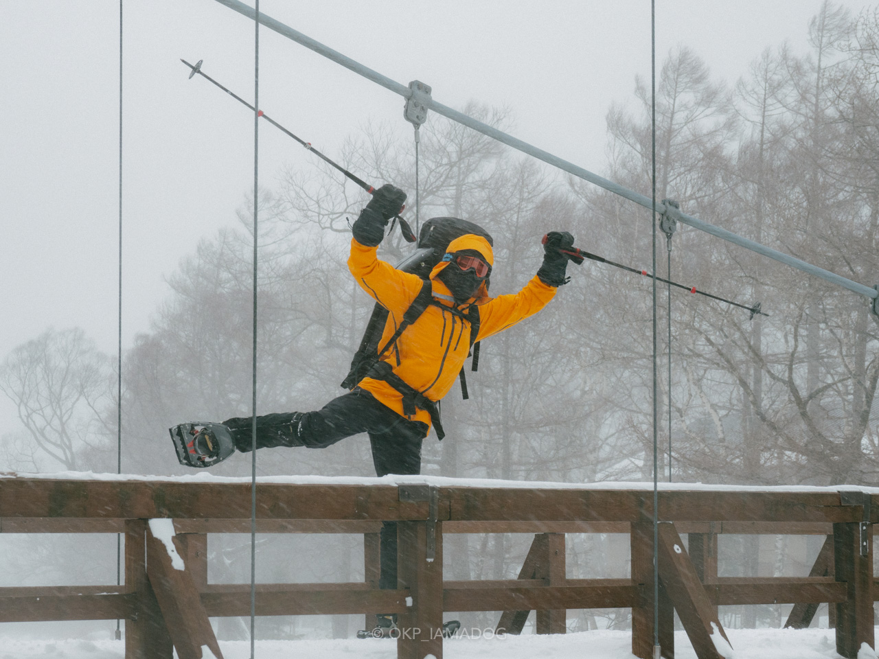 体幹の強いクライマーは吹雪の中でもランドネみ溢れるポーズをキメられるぞ。