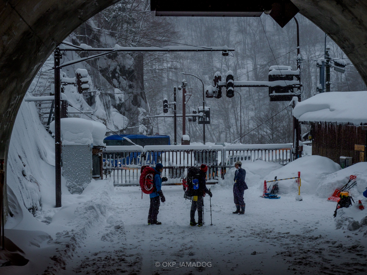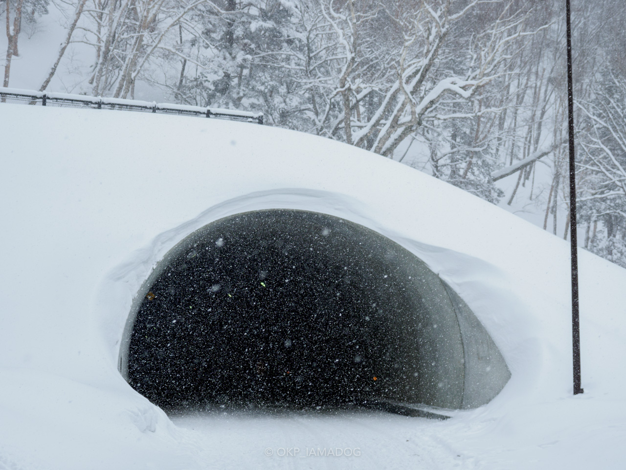 何気にトンネル出入り口付近は雪崩の危険地帯。それでなくても張り出した雪庇が危険なことは見れば分かりますね。急いで通り抜けよう!