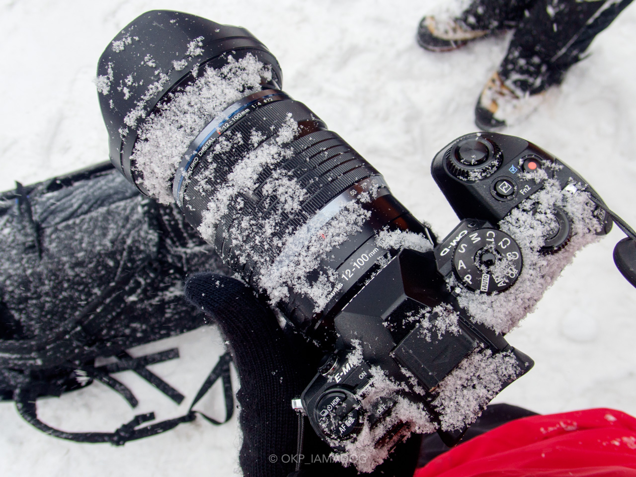 私のカメラの兄弟機でもあるオリンパスE-M5MarkII+M.40-150mmPROもすっかり雪まみれですが、まあOM-DとPROレンズならなんてことないでしょう(過信)。