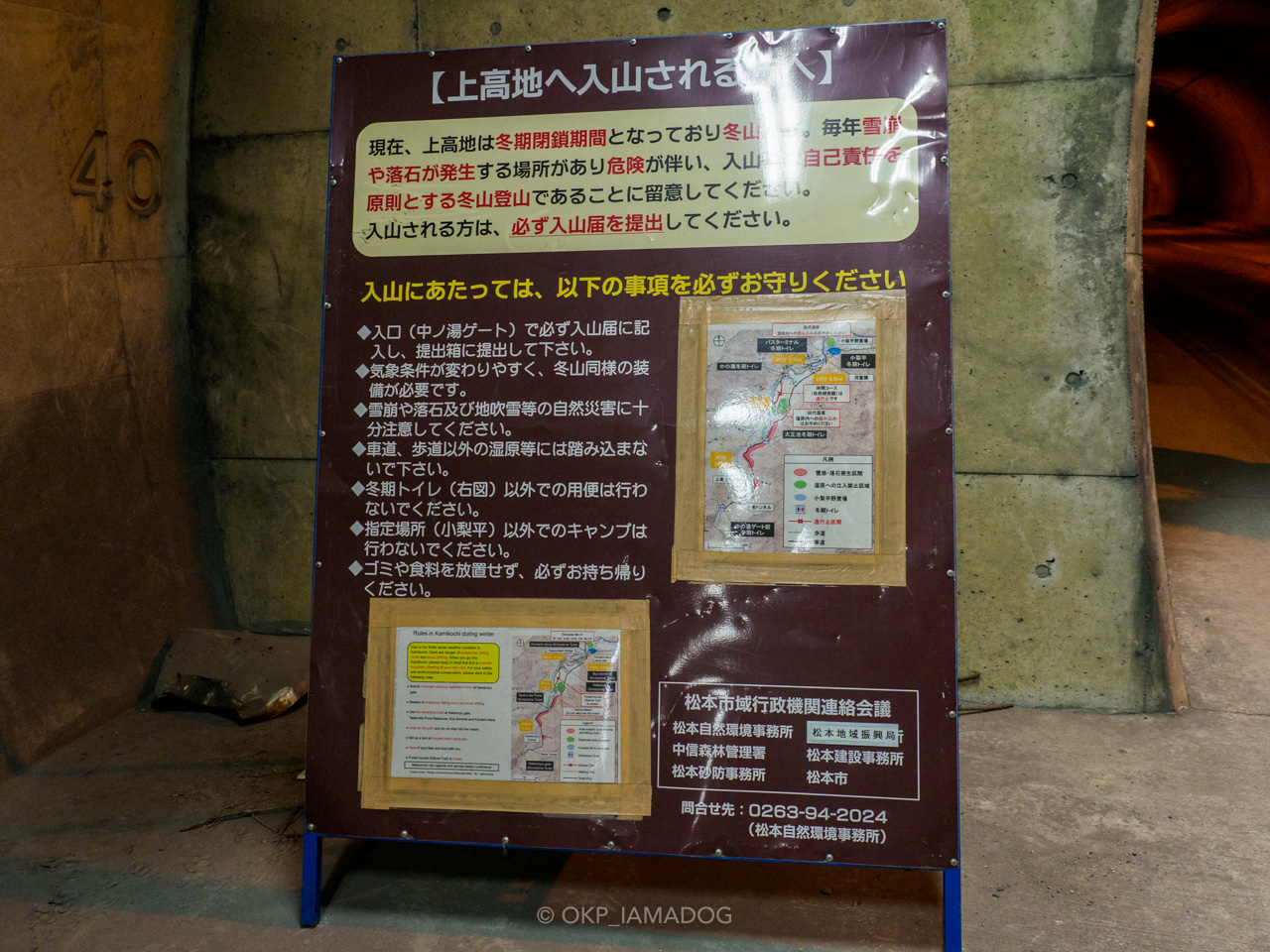 GW直前から開通する釜トンネルは冬期閉鎖中です(シーズン中はマイカー規制区間)。ここから全長1,310mのトンネルを歩いて上高地へと入るのです。一度、この釜トンネル歩きをやってみたかったのですよね。