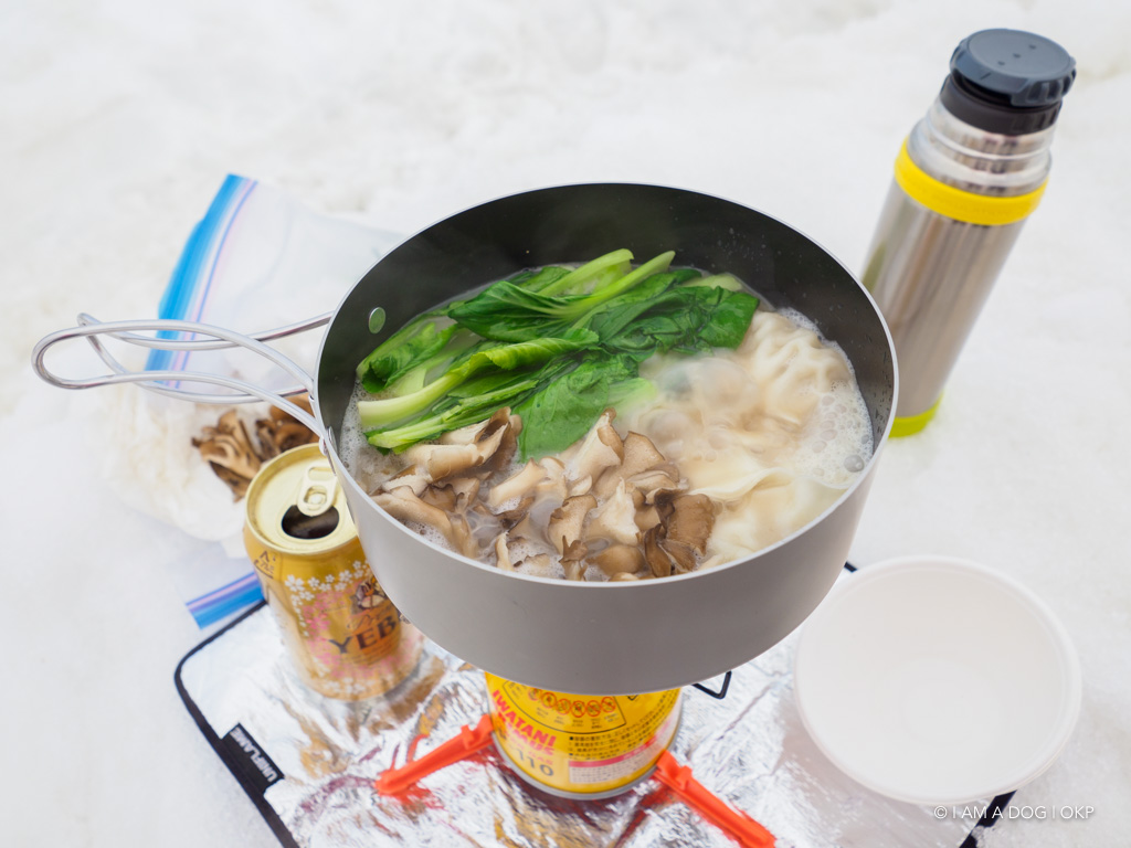 あと、登山装備ではありませんがこれらもテント泊には重要な装備?ですね。厳冬期のビールは体が冷えてしまいますが(熱燗がおいしい)、残雪期だと天然の冷蔵庫もあるし、かつ気温的にも問題ないのでビールが大変おいしいです(でも夜はちょっと寒い)。