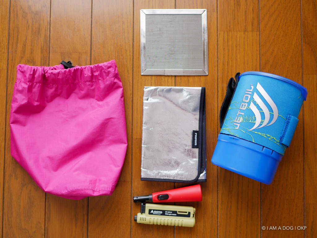 今の季節は湯沸かし用のジェットボイル(ZIP)しか使ってません(調理用は妻がSOTOのストーブを持っています)。点火用のライターは予備も忘れずに。