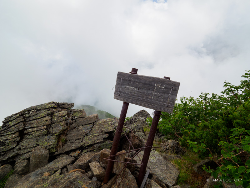 稜線上の広いスペースに山頂標識はあります。ということで三山の縦走完了です。