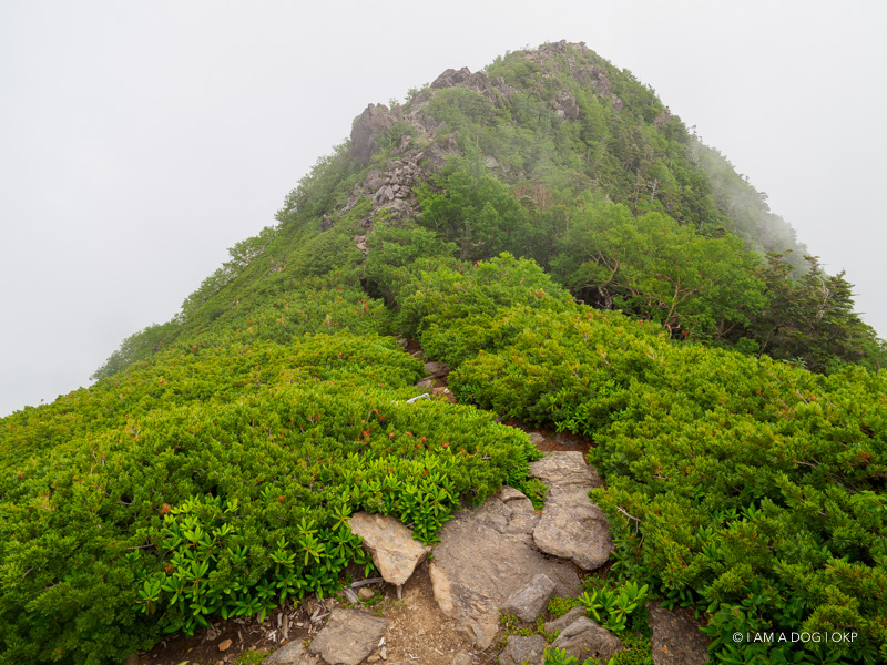 少し前からガスに包まれてしまっていたのですが……(写真は高峰を振り返ったところ)