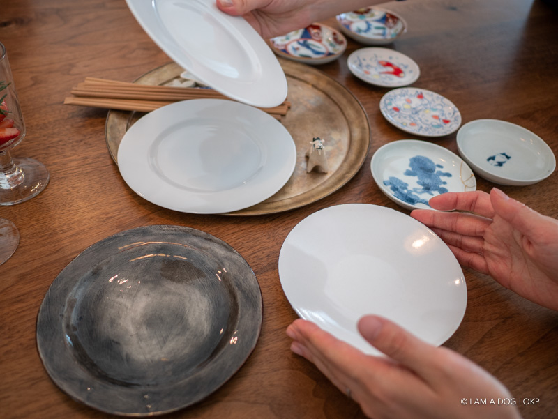 あえて全部が揃いでない大小の取り皿をゲストが選ぶシステムも本書にも登場します。「このお皿、連載で見たやつ!」と盛り上がる私達。