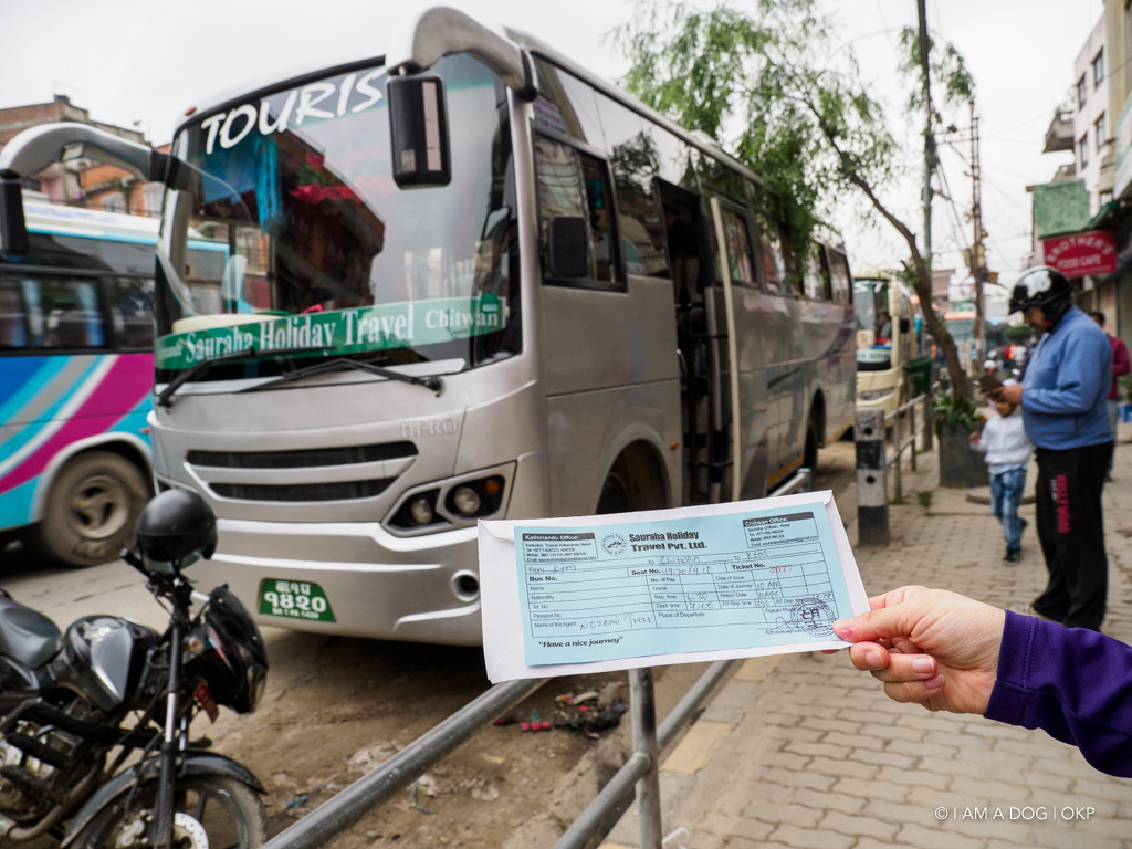 所要時間は約5時間で片道Rs500〜600程度(つまり500〜600円、激安)。バスチケットはタメル地区にたくさんある旅行代理店で取ることができます。日本人向けに看板を出している所や日本人が経営する代理店などもあって、我々もそんなうちの1つを利用してチケットを予約しました。