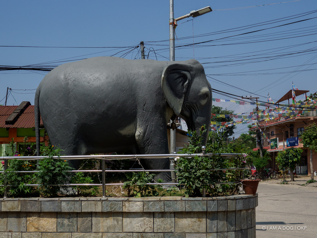 象の像「エレファントチョーク」はソウラハ村のランドマーク。この他にサイの「ガイダチョーク」もあります。我々が泊まるホテルはこのエレファントチョークを曲がって……