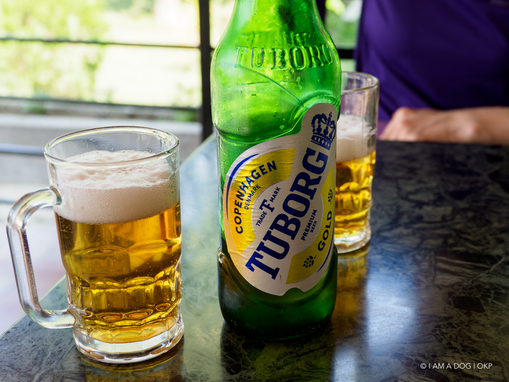 とにかく暑いのビールで乾杯。この一帯は海外ビールのツボルグとハイネケンが看板を出しまくってシェア争いをしている感じ? ツボルグ美味しいですよね。