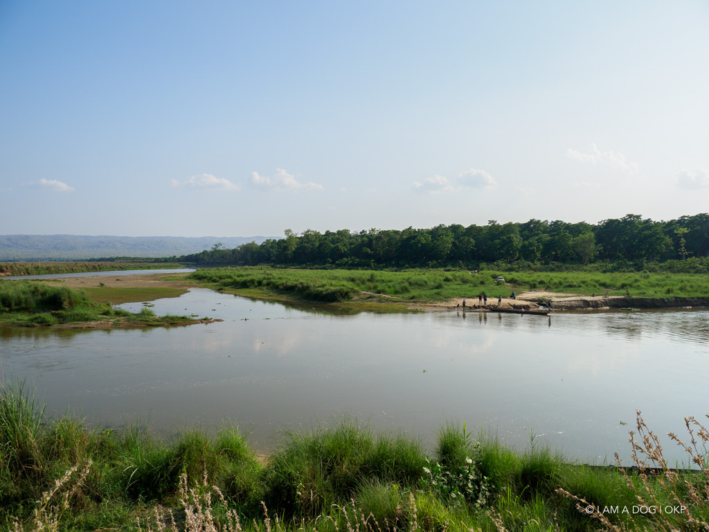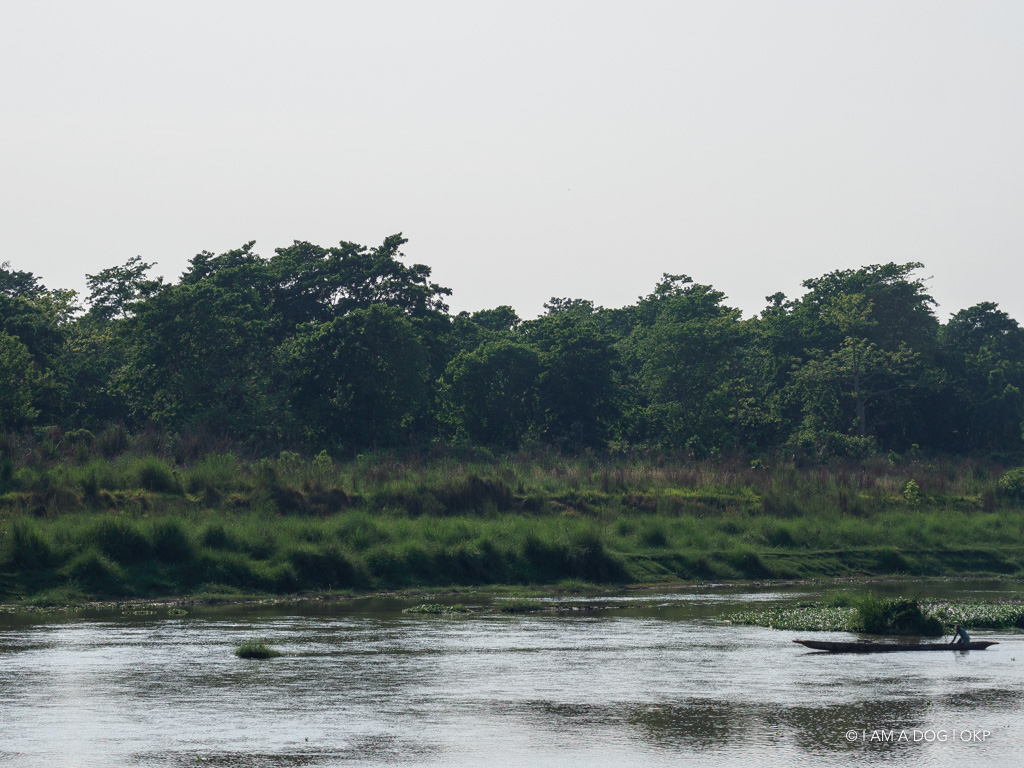 そして川に出ます。川の向こうがチトワン国立公園で広大なジャングルが広がっています。