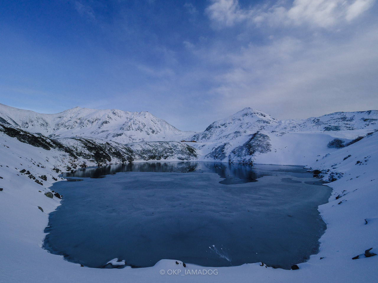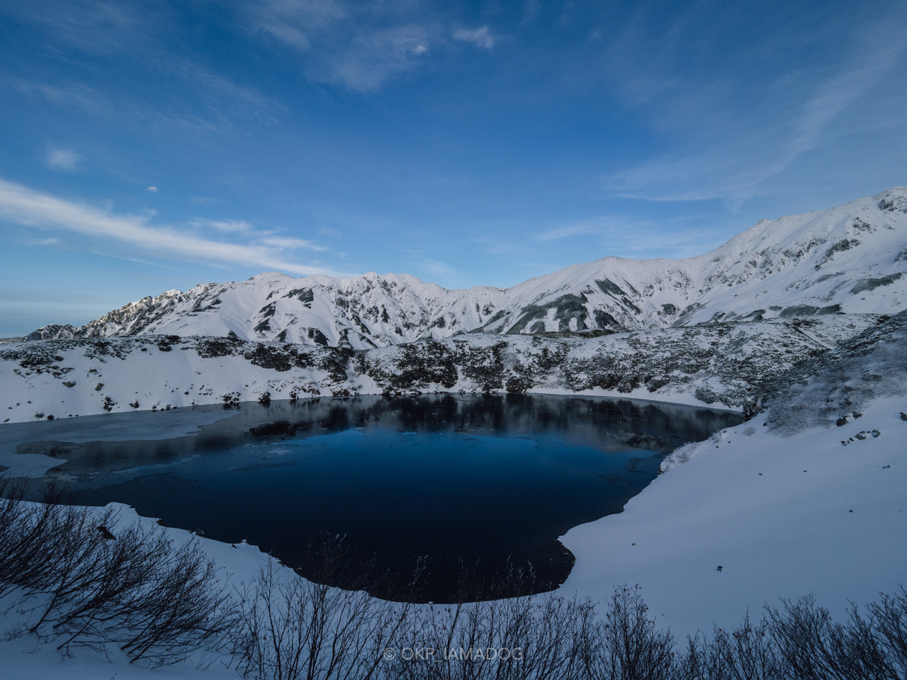 風は収まっていますが既に池が凍り始めていてリフレクションはありませんが、これはこれで素敵じゃないですか。