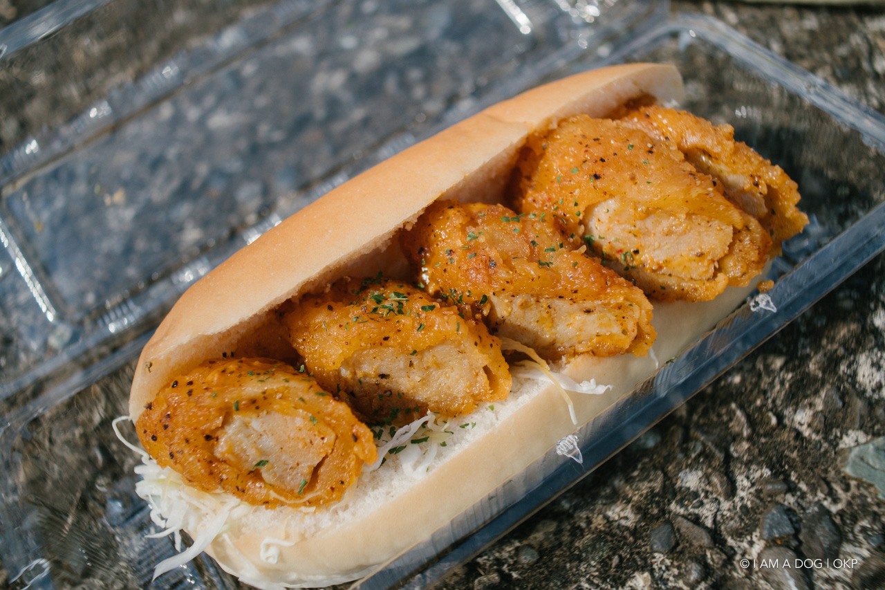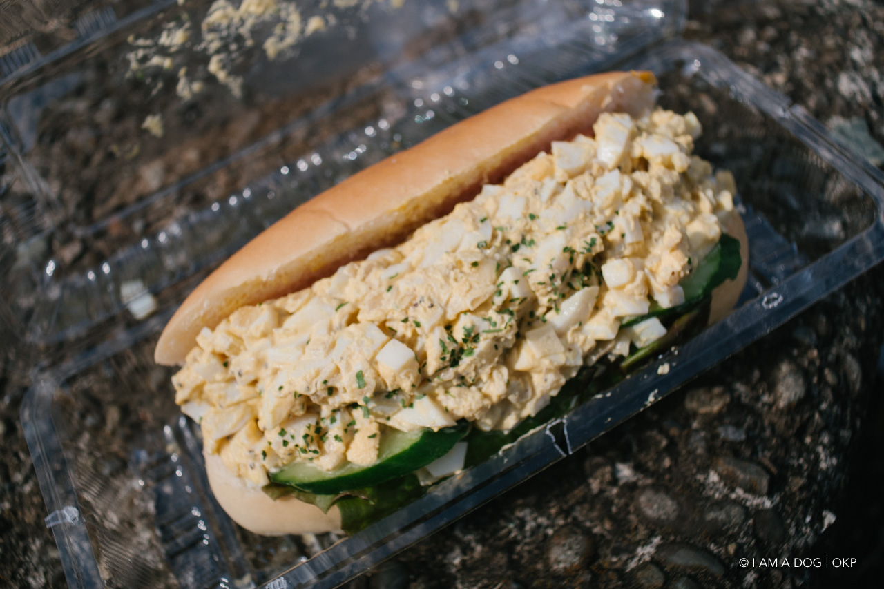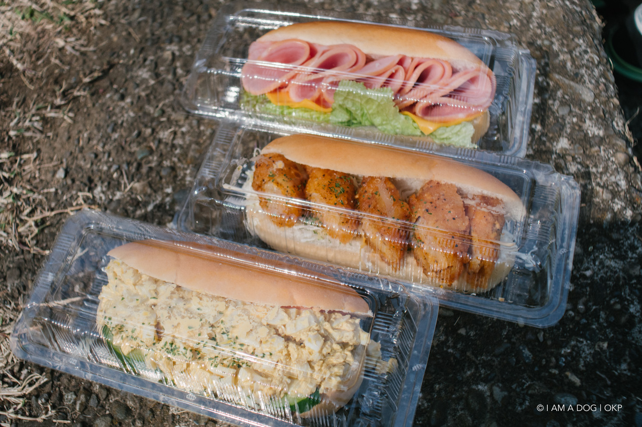 8時から14時までの営業で13時半過ぎに行ったので、残っていた惣菜パンはこの3種類。ホットドッグ、フルーツドッグ、白身魚は既に売り切れ…… フルーツドッグ目当てのお客さんが増えてるそうですし、市場で働いてる人もお昼に買ってそうですし、もう少し早く来ないとダメかな。
