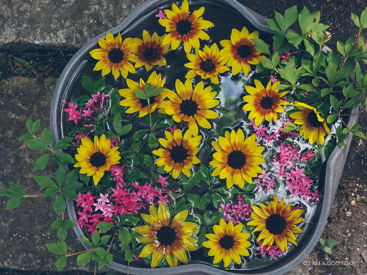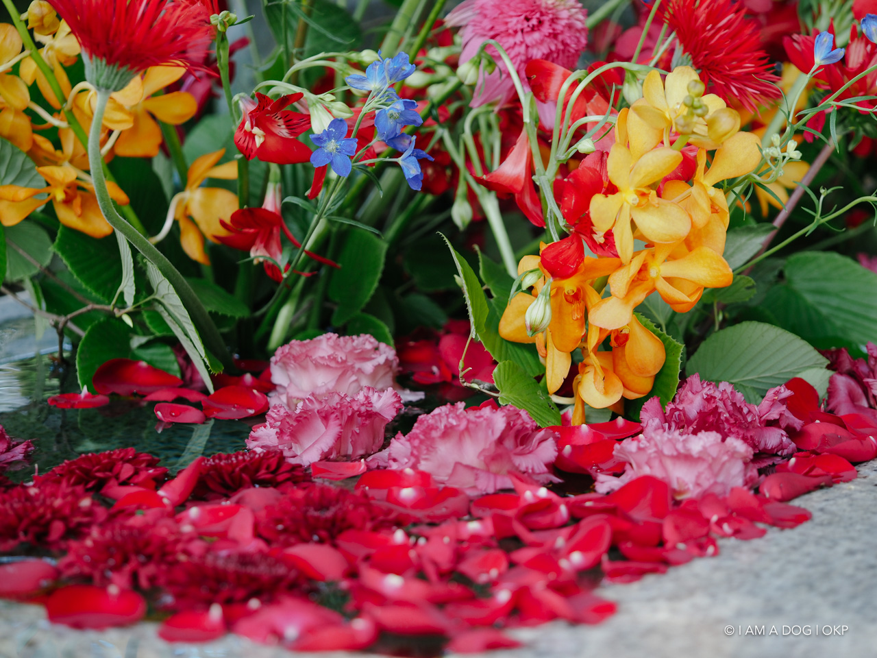 手水舎と花手水の合体スポット、花の中から龍が顔を覗かせているのが面白いかも。