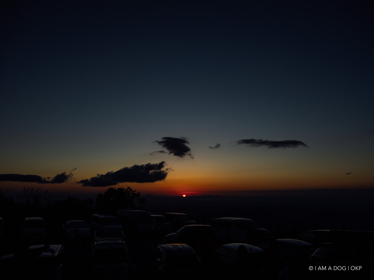 日の出を眺めつつ朝食を食べたり出発の準備をしますが、明るくなる程に駐車場の惨状が露わになっていきます。一部「ここならギリ大丈夫だろう」的な判断をする人が出てしまうのはまだ理解できなくもないものの、どう考えても100%アウトな場所に車を停めたまま入山してしまうのは理解に苦しみます。