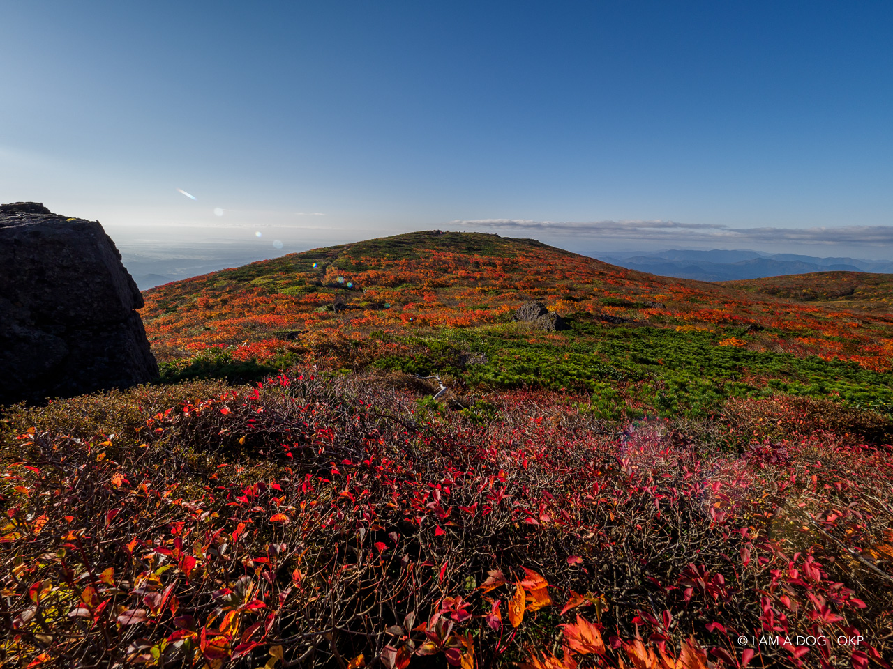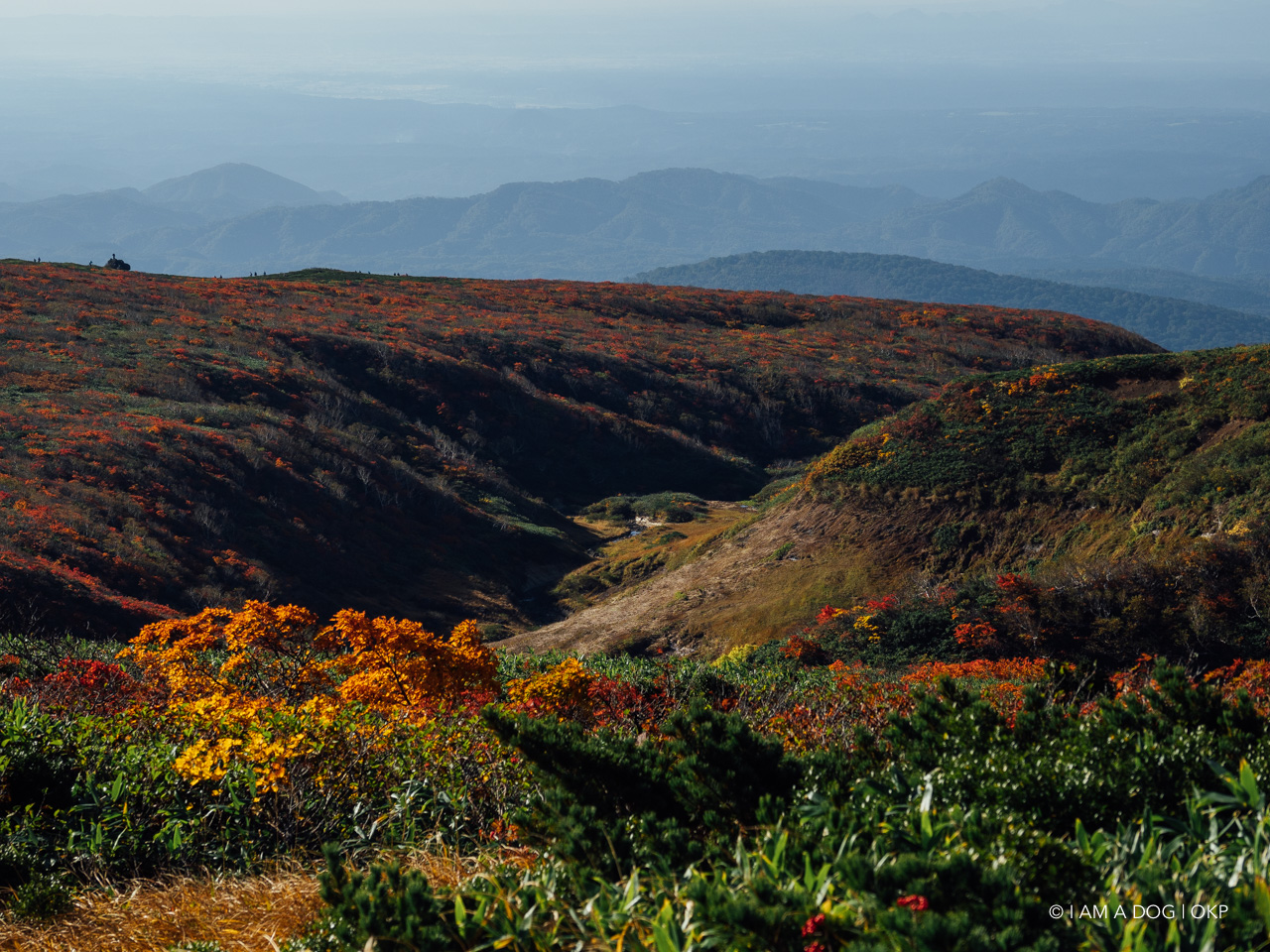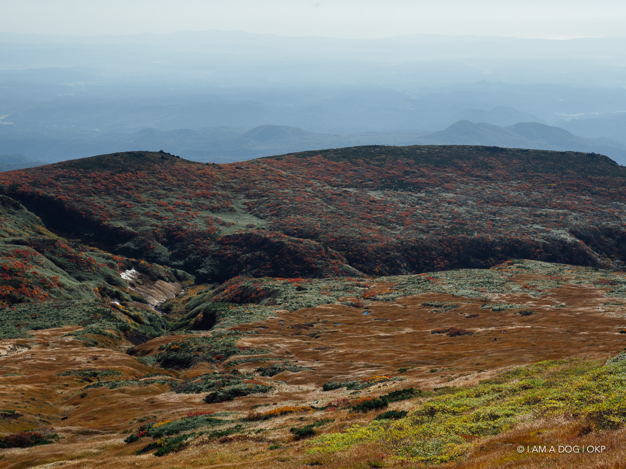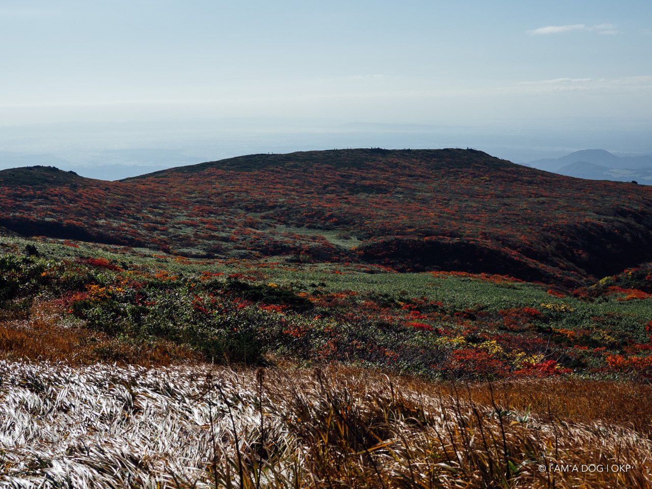 東栗駒山の稜線は緩やかで見晴らしが良いので360度の紅葉が楽しめます。