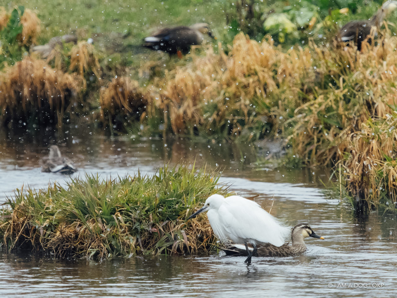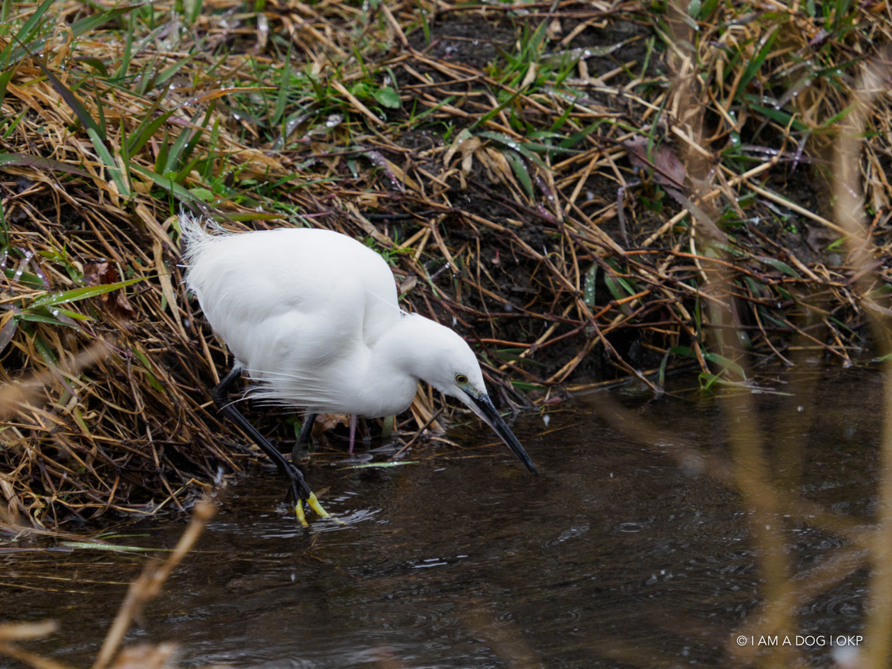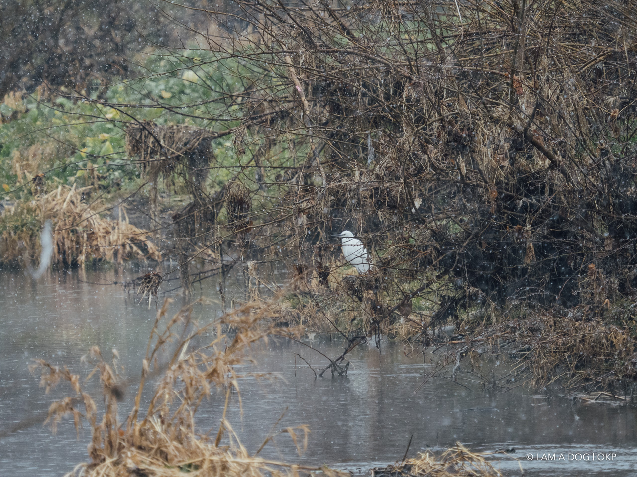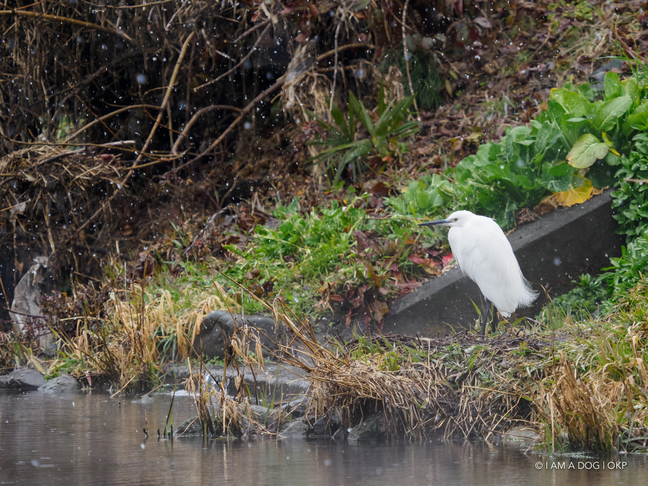 この日、あちこちで見かけたコサギ、雪の中元気にガサガサしています。