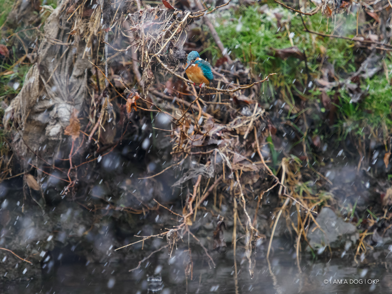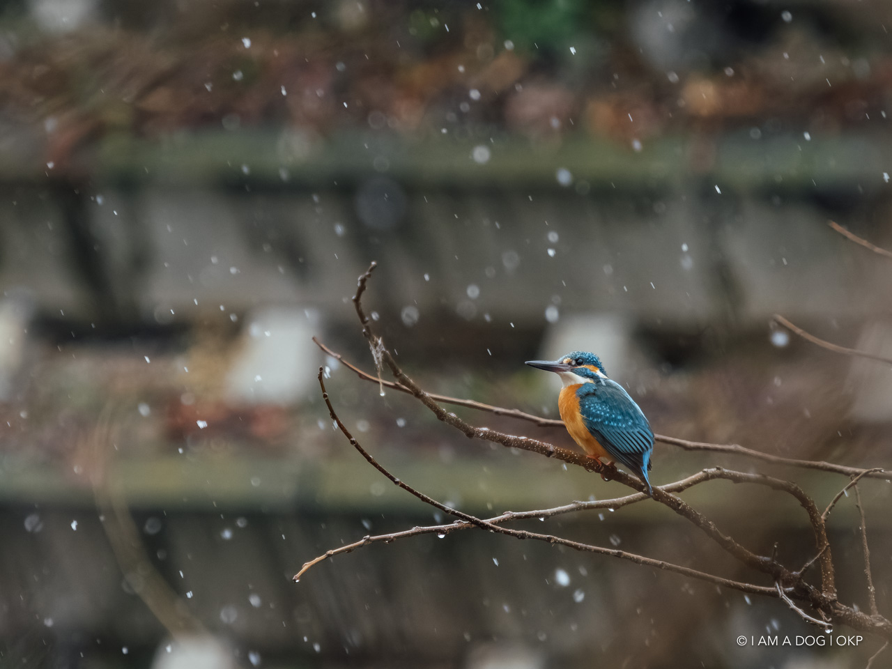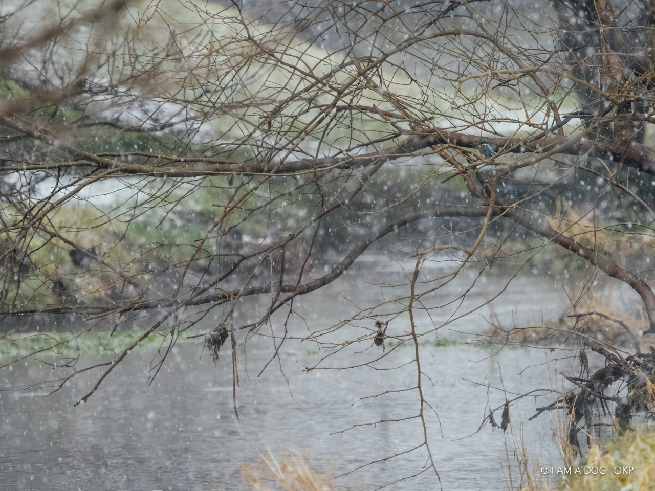 見慣れた野川のカワセミですが雪が降っているだけで普段と違う雰囲気に……。