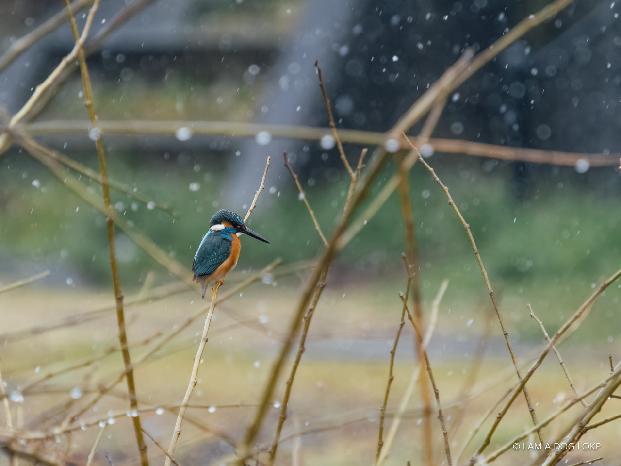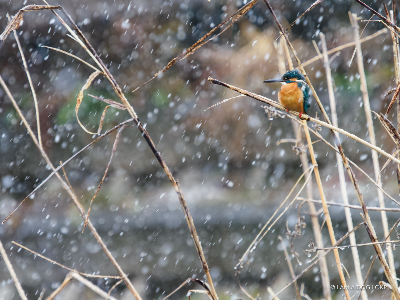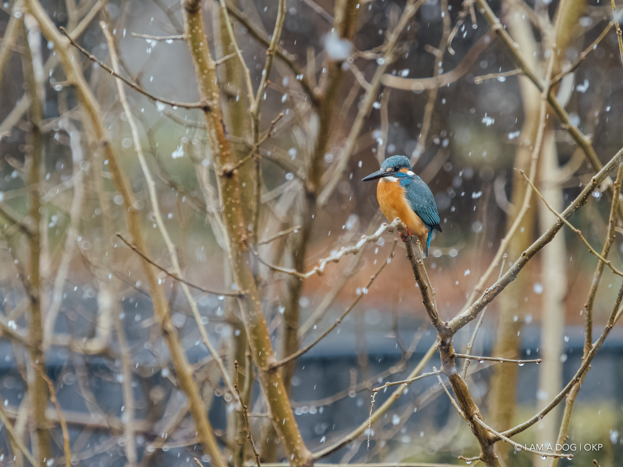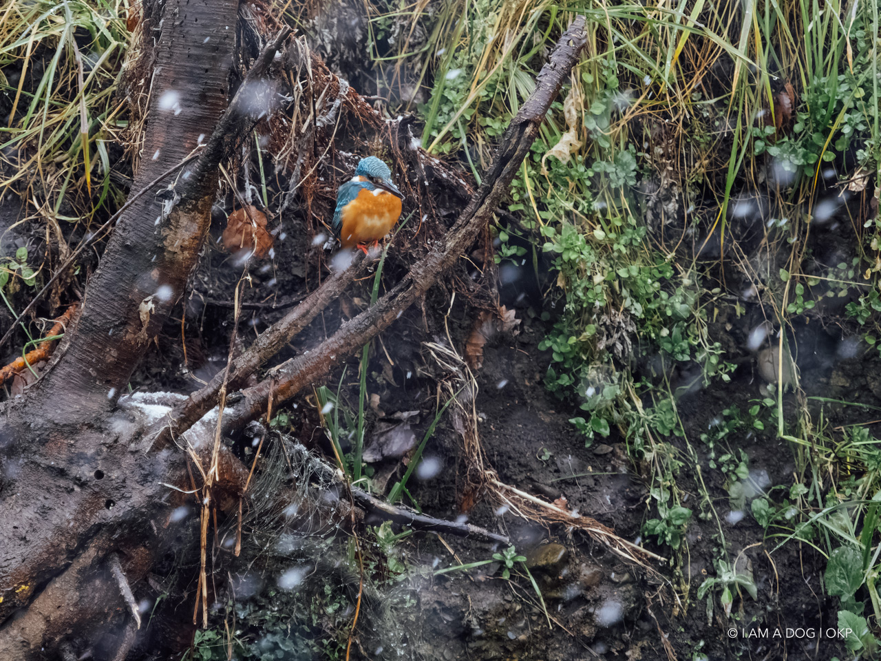 見慣れた野川のカワセミですが雪が降っているだけで普段と違う雰囲気に……。