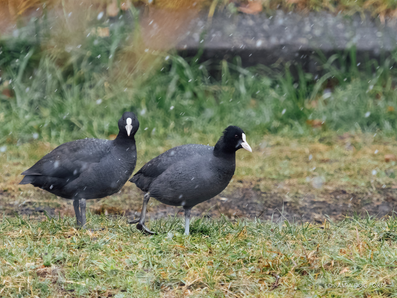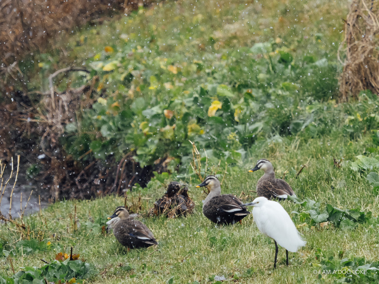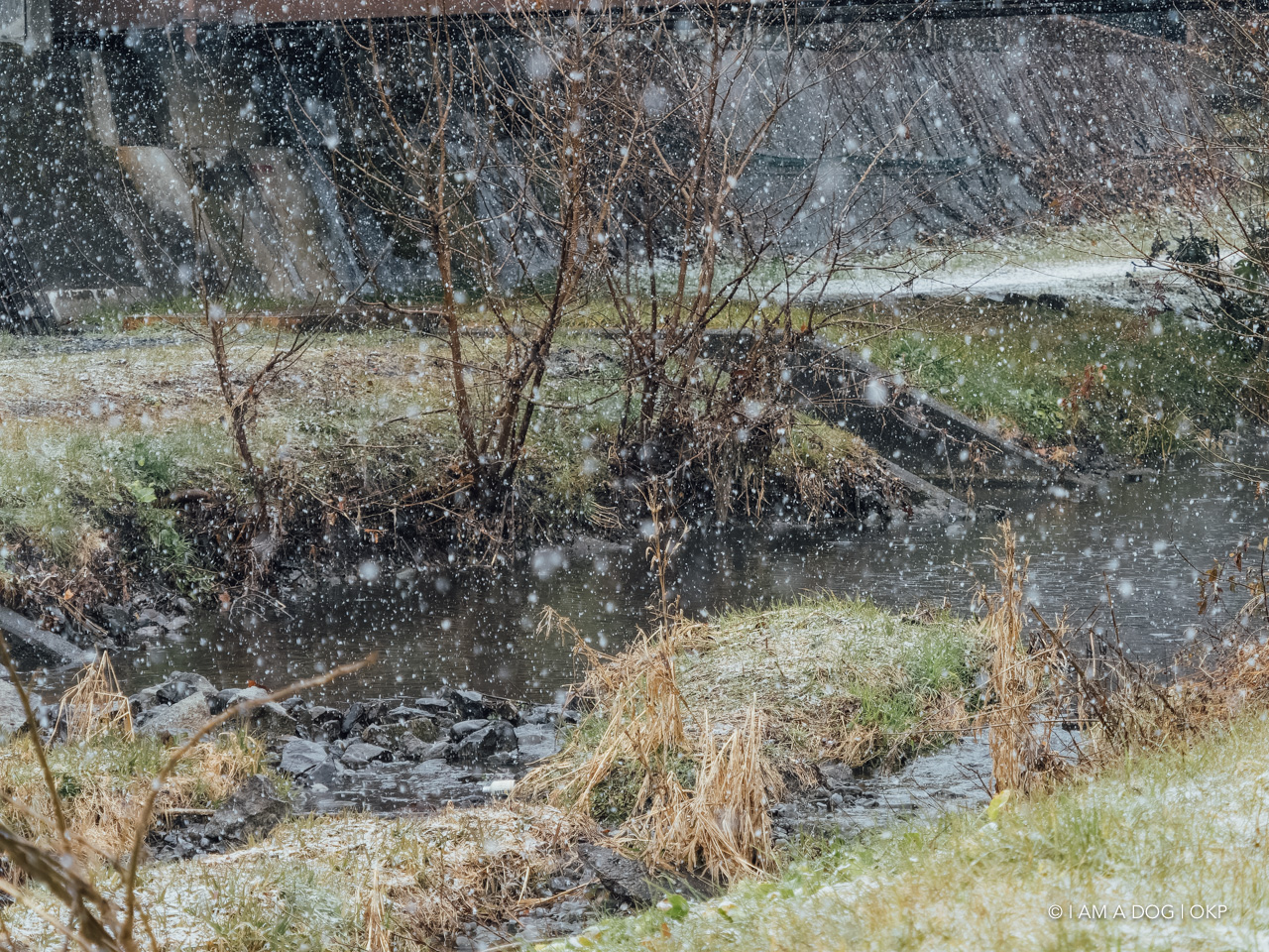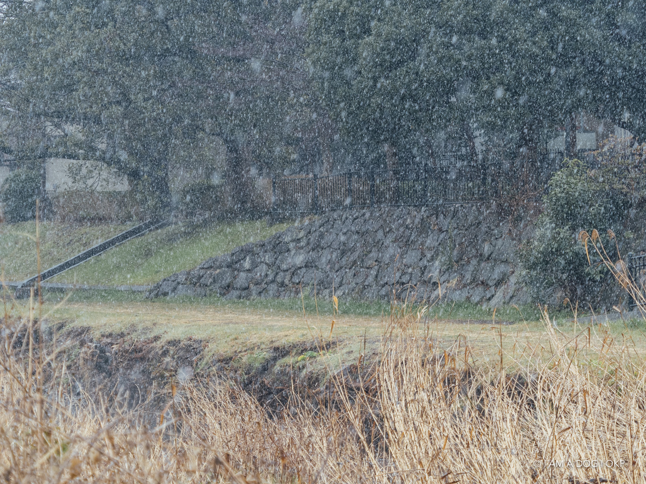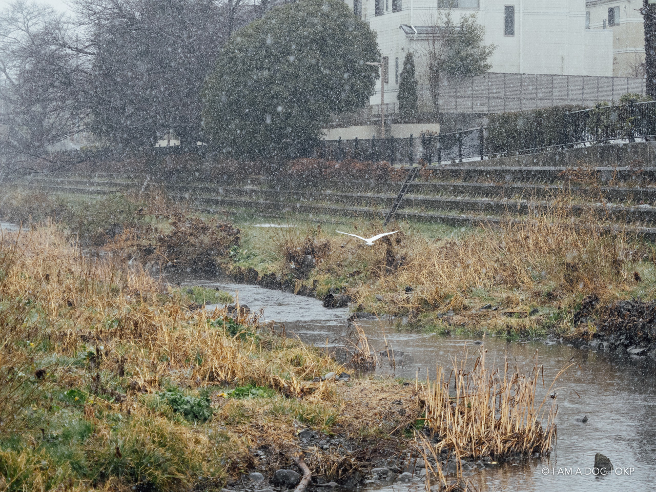 降雪は昼過ぎから午後に掛けてピークとなり、河川敷にもうっすらと雪が積もりましたが夕方にはまたみぞれ雪に。今回はそんな積雪の雰囲気も伝わるように時系列で野川の雪と鳥たちの写真を貼って行きます。