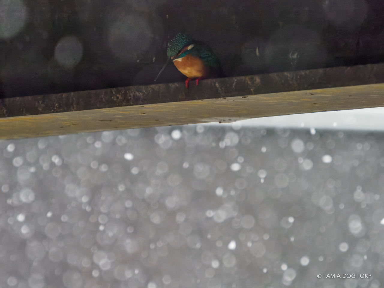 橋の裏でカワセミが雨宿り(雪宿り)。
