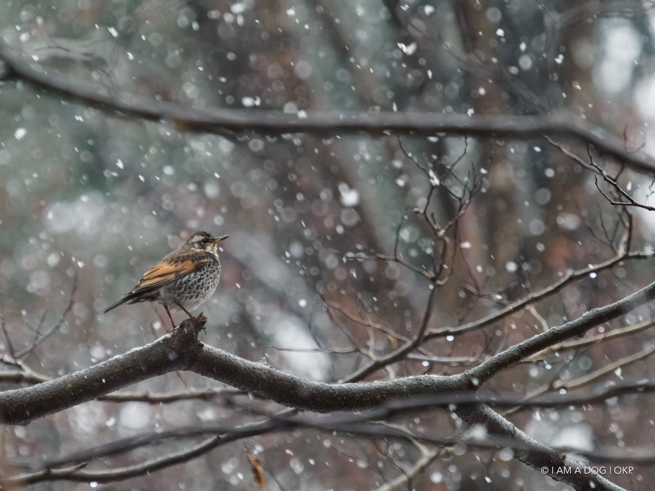 雪というより雨の日のような雰囲気(そういえば雨の中の鳥も一度ちゃんと撮りたい)。