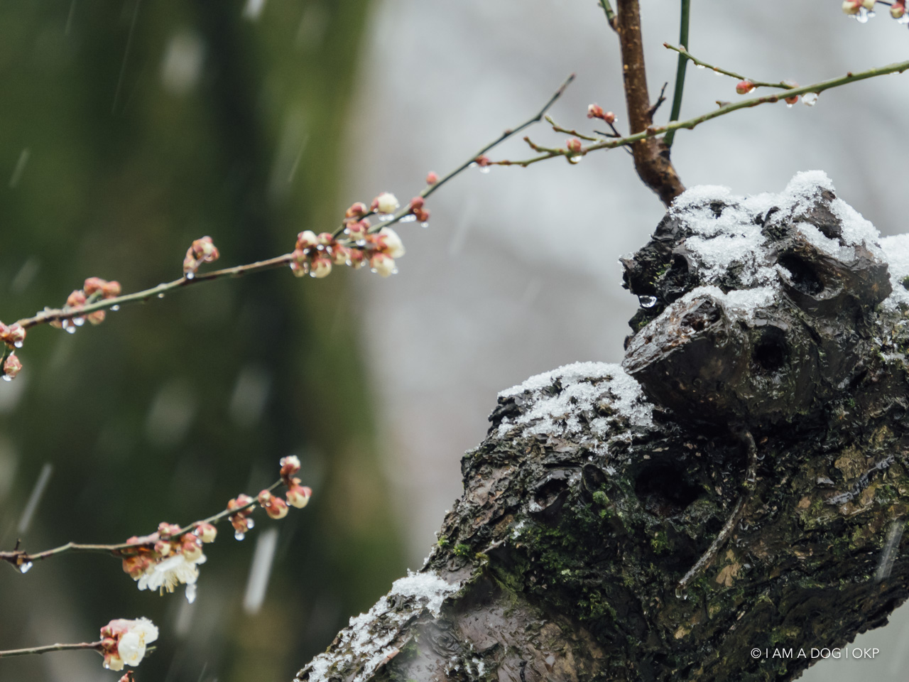 カメラは雪まみれ…… ではなくびしょ濡れです。気温はそこそこ低いのですが、水っぽい雪なのですぐに解けてしまう。1月の動物園のときとは違って靴や荷物もびしょ濡れ、スノーシューズでなく防水のトレッキングシューズや登山靴を履いてくるのでした。