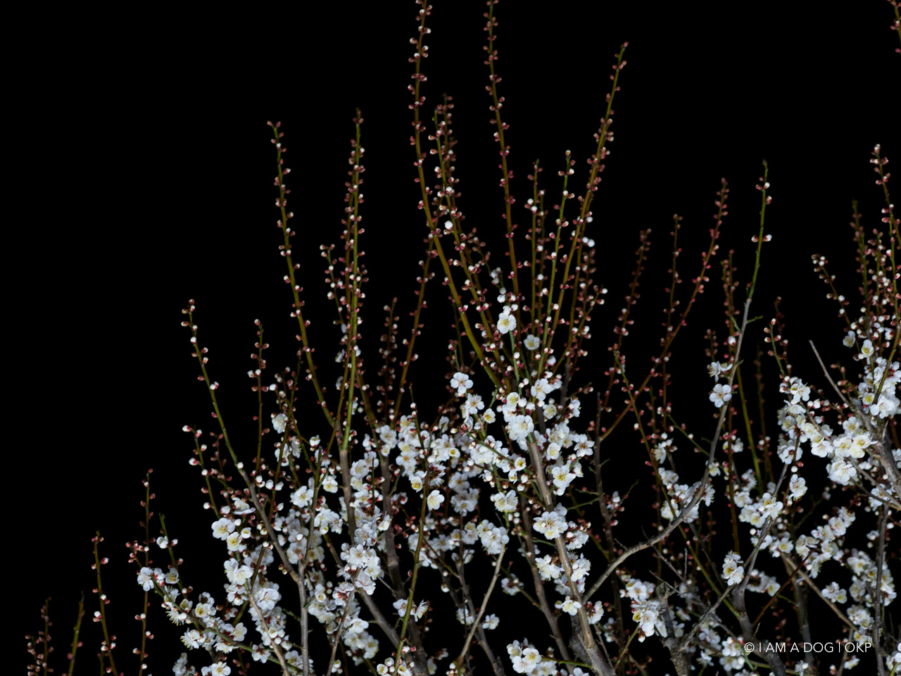 暗闇に赤い梅は思いの外映えますね。