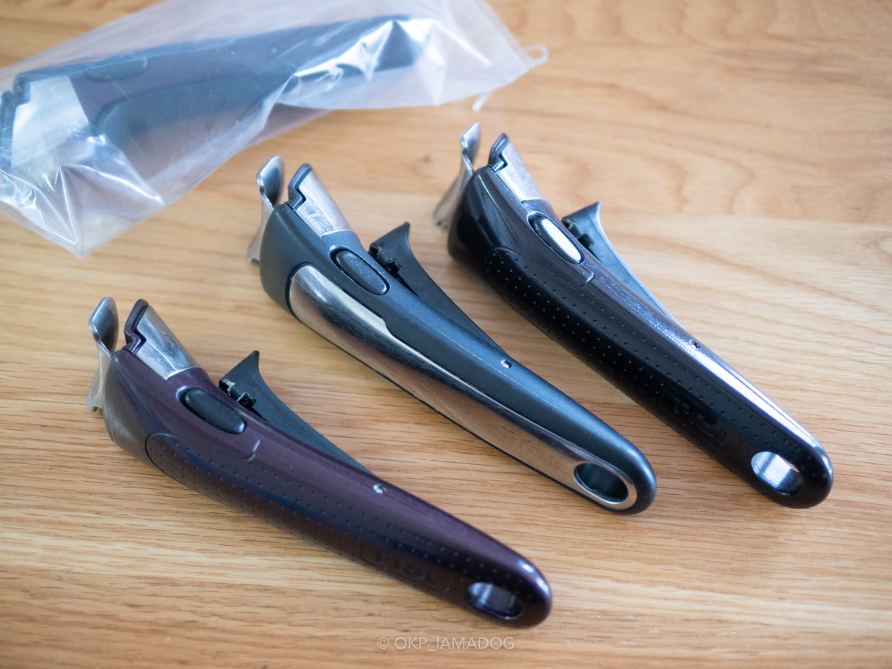取っ手は以前(現行タイプにモデルチェンジした際に)2本買っているのでこれで4本になりましたが、これも長年使っていると熱で根元部分が溶けてきたり、スイッチの動きが悪くなってくるので、1本捨てて入れ替えることにしました。