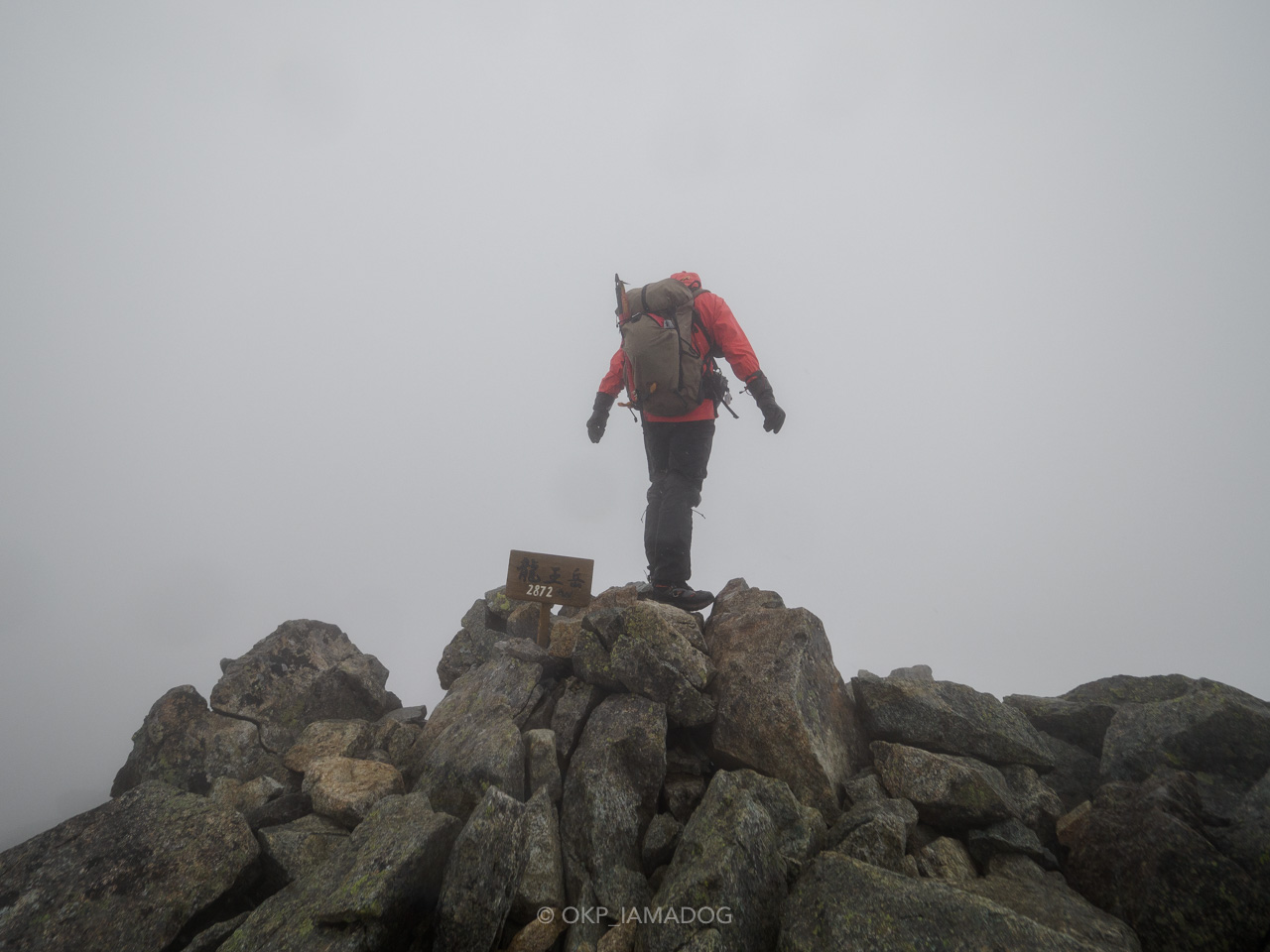 雨が降ってきたのでザックにカバーを掛けたりして北峰へ向かいます。