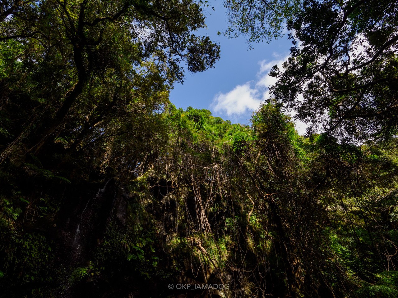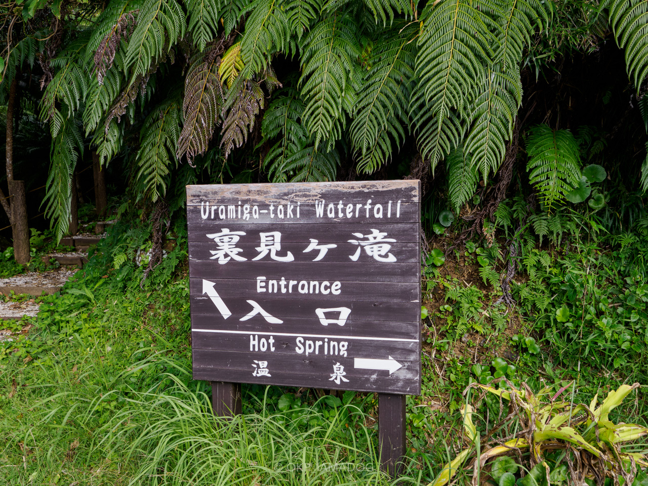 裏見ヶ滝へ。熱帯感のある道を5分ほど。