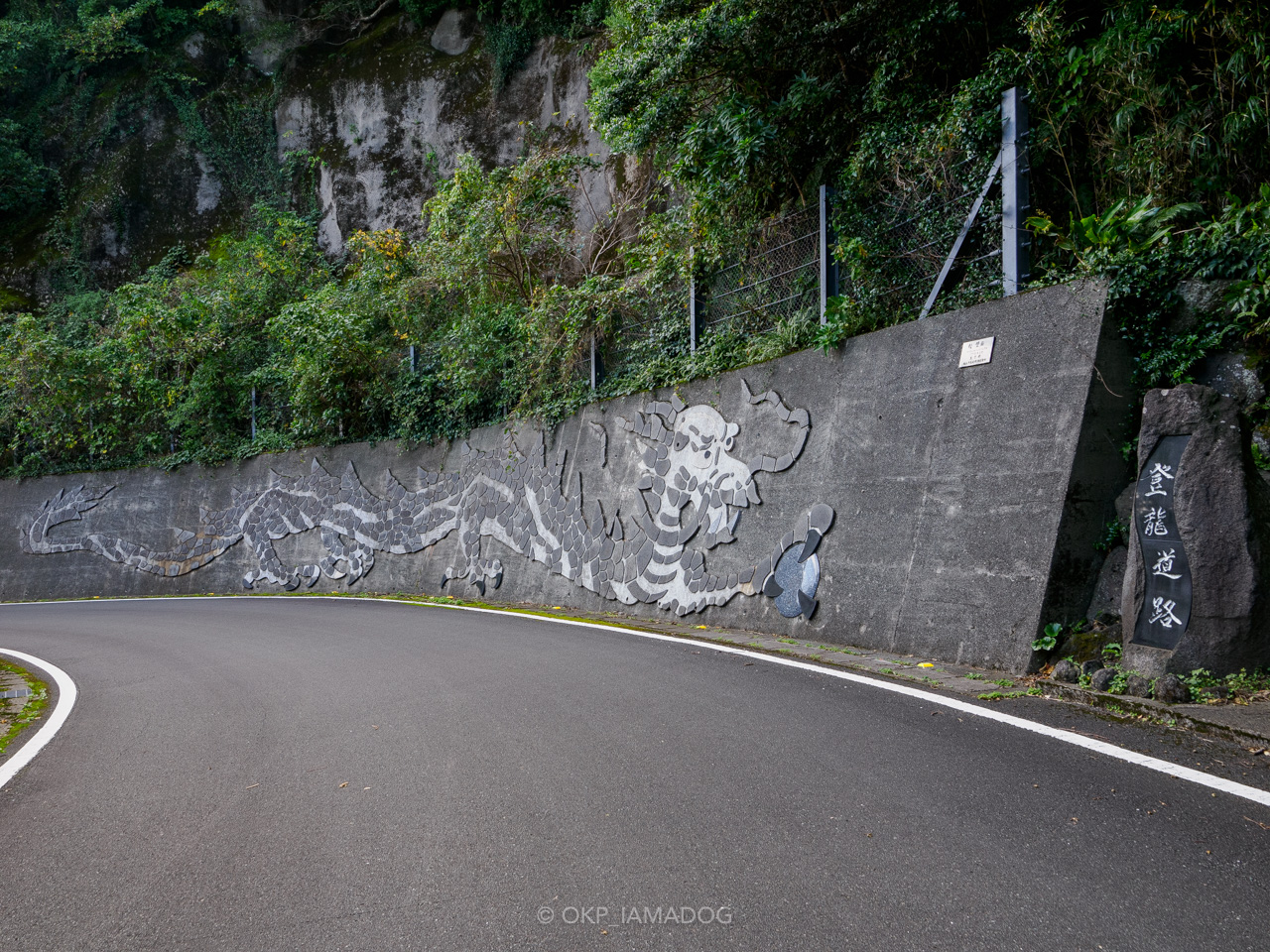 三根側の壁面の龍が見えたらこれで登龍道路も終点…… という訳でもなく、ここからが一番ヘアピンが続く区間だったりします(笑) 末吉側に比べると道幅も広く、しっかり2車線あるので快適に運転できます。