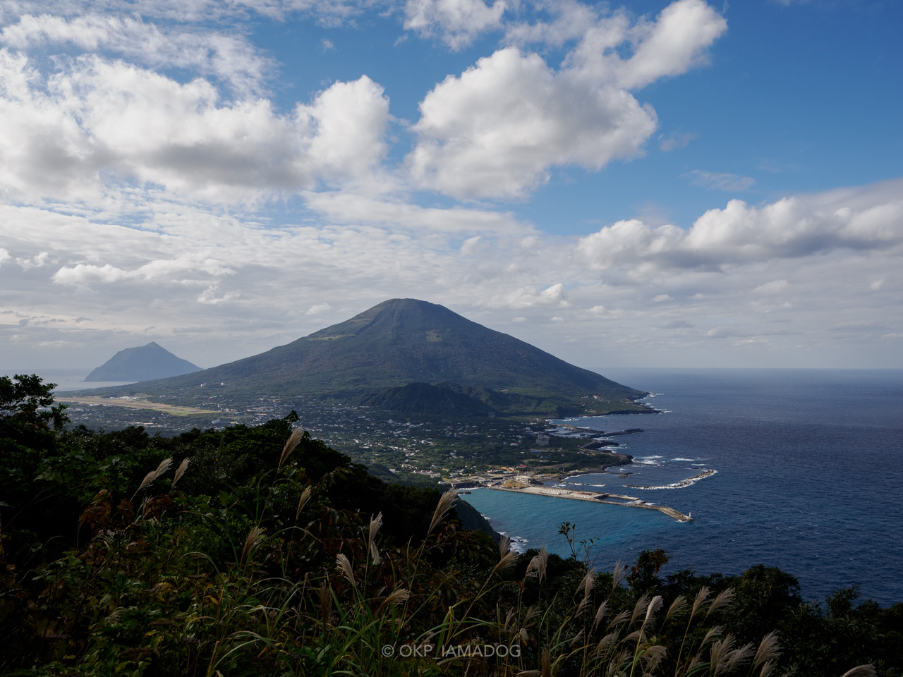 背後には八丈富士。あまりに近いとそこまで富士山っぽい形には見えません。