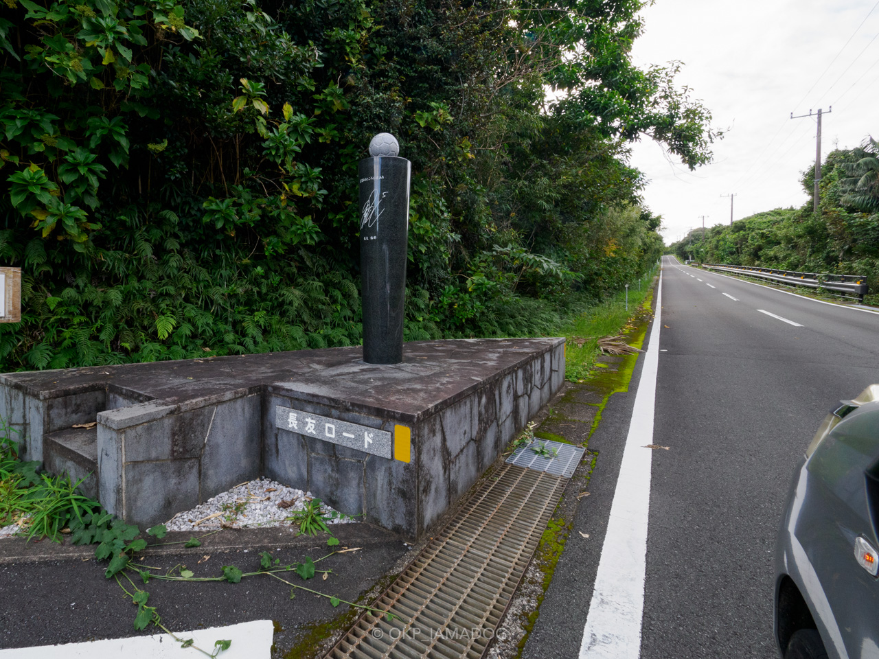 プロサッカーの長友佑都選手がかつてトレーニングで走ったという「長友ロード」。なんだかよく分かりませんが、とりあえず助手席から撮っておいてもらいました。