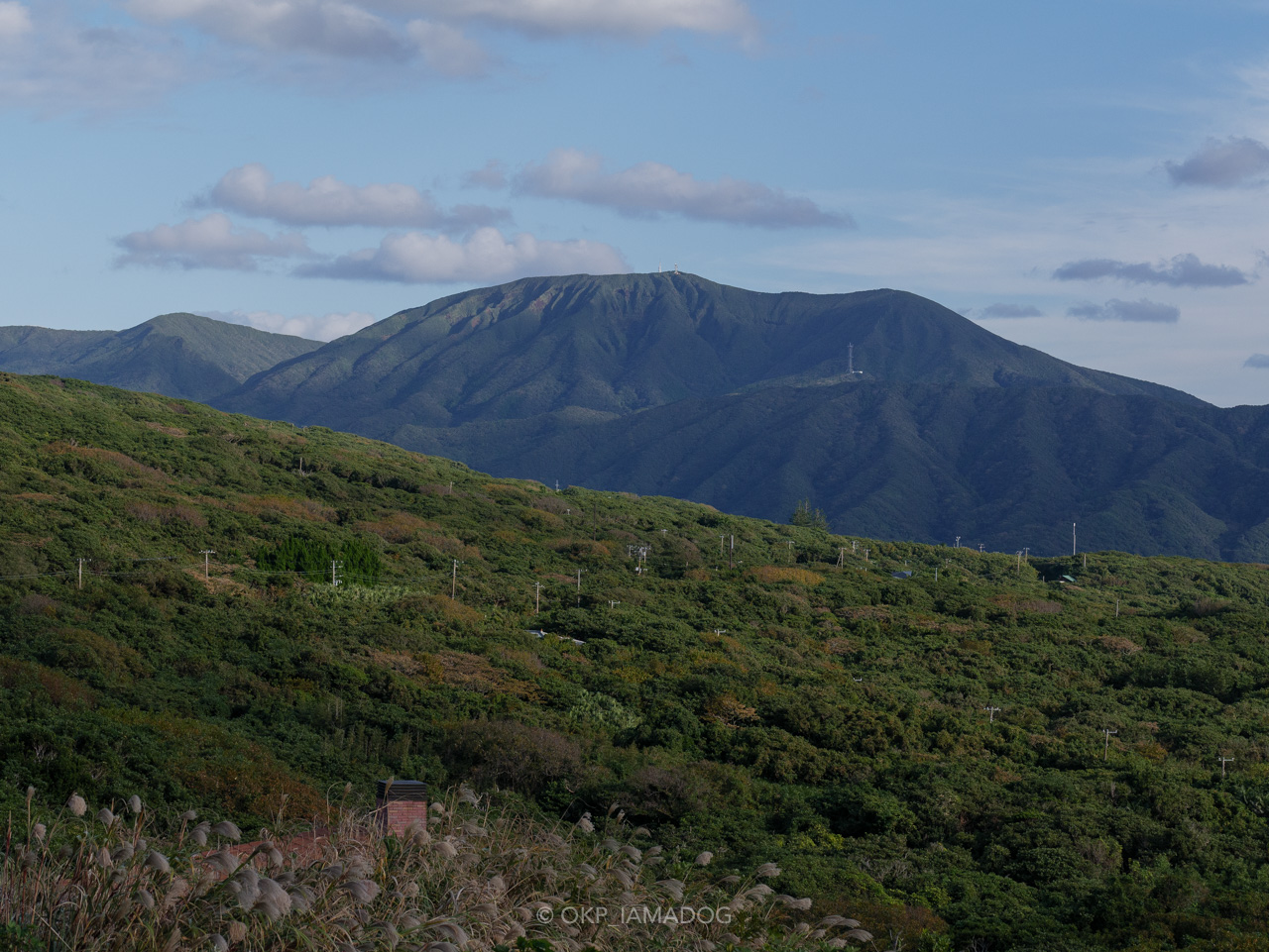 八丈一周道路の北側はほぼ集落もなく大回りで八丈富士の裾野を回って行きます。車を停めたのは大越園地。永郷展望台は公衆トイレの建物の上に展望台という無駄のなさ。