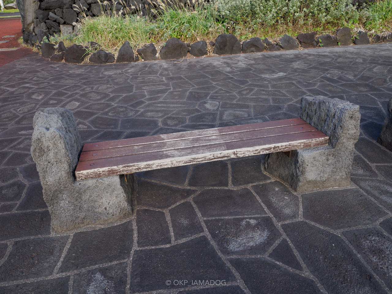 溶岩を加工したっぽいベンチ。