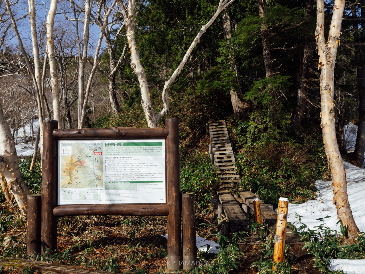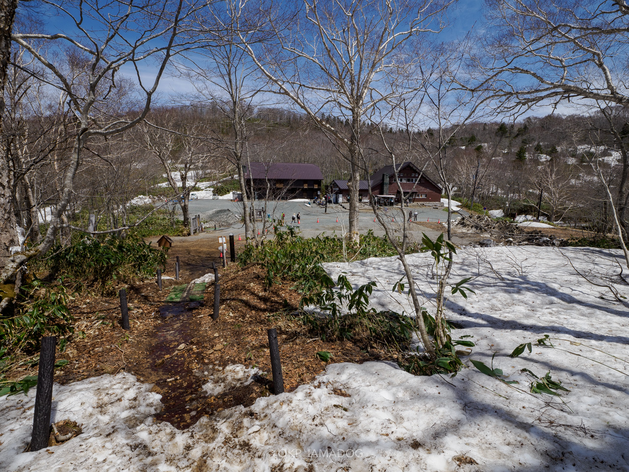 この木道エリアだけ雪が完全に消えているのが面白いというか、雪解けの早い場所だから植生保護のために木道を設置しているのかな。