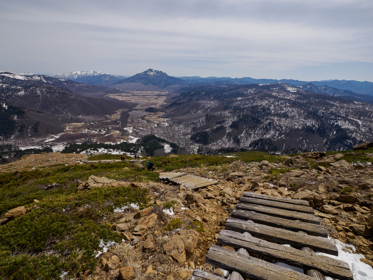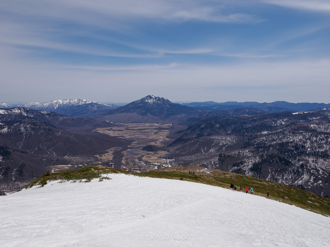 お天気は晴れてるもののやや霞がかったというか薄い雲が広がっておます。見ている角度のせいもあるかもしれませんが、前日に比べても燧ヶ岳の雪が減っているように見えます。